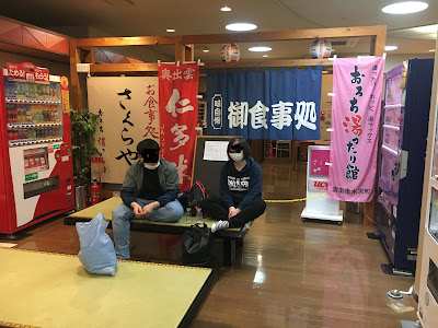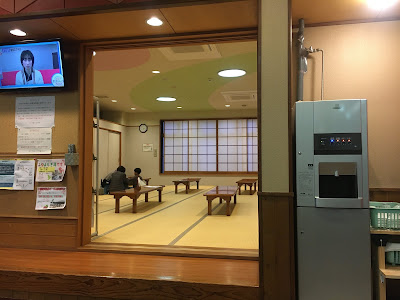 我们开始泡温泉了,这里有露天风吕,在二楼,室外有楼梯上,不过当时还没开(大概要再过一周)。不过一楼也有小露天的。室内有好几个池,还有可以躺下来的寝汤及红外线桑拿。 温泉装修不算很华丽,但也不错了。