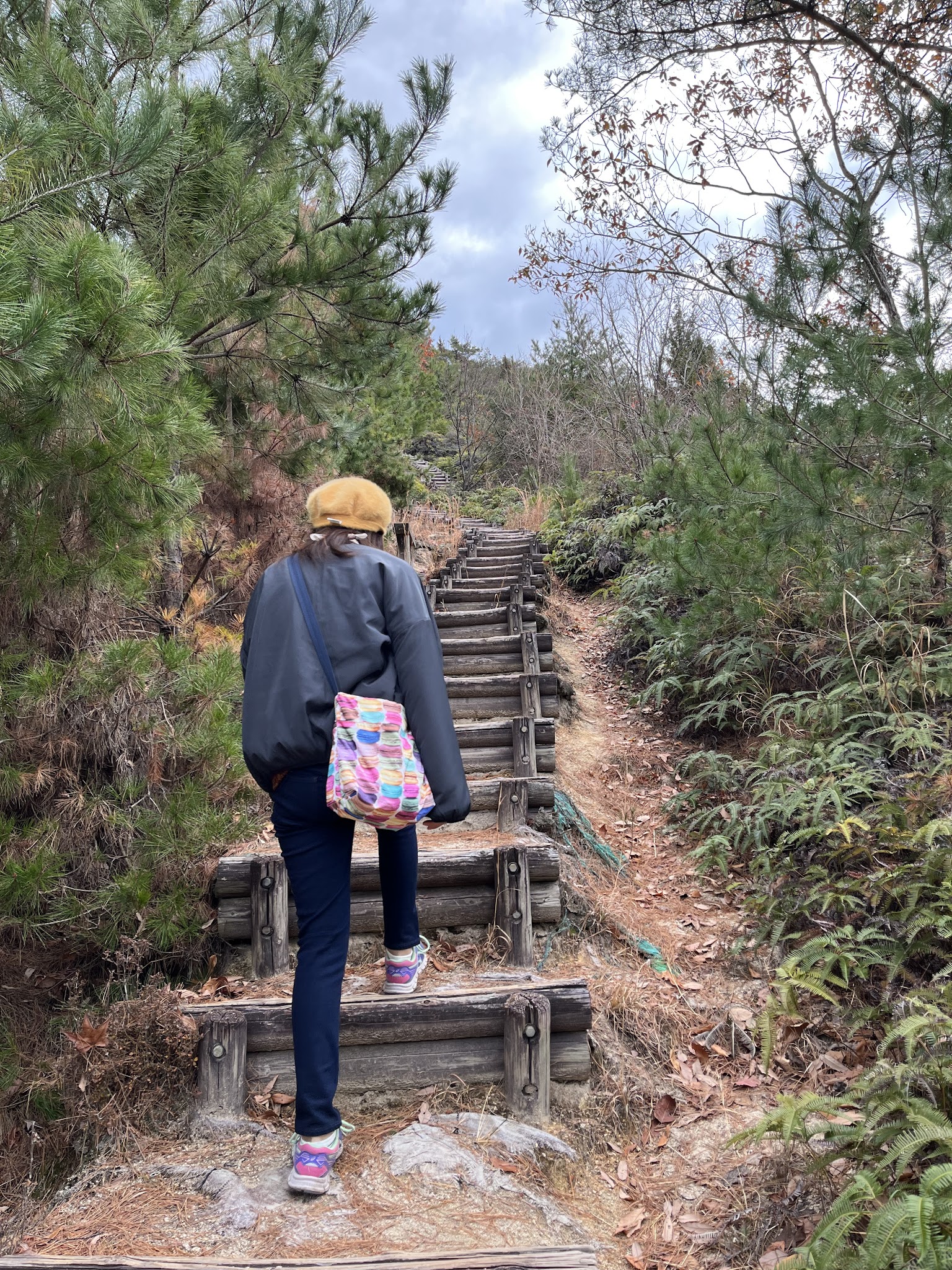 今天登山结束,路上没见到一个人,下来才看到有人放风筝。我们现在要出发去下一个地方了。由于这里花的时间比预计多,我们后面行程改了先后顺序,先火速在便利店解决午饭(今天全市没饭吃),然后就去法国A货了。