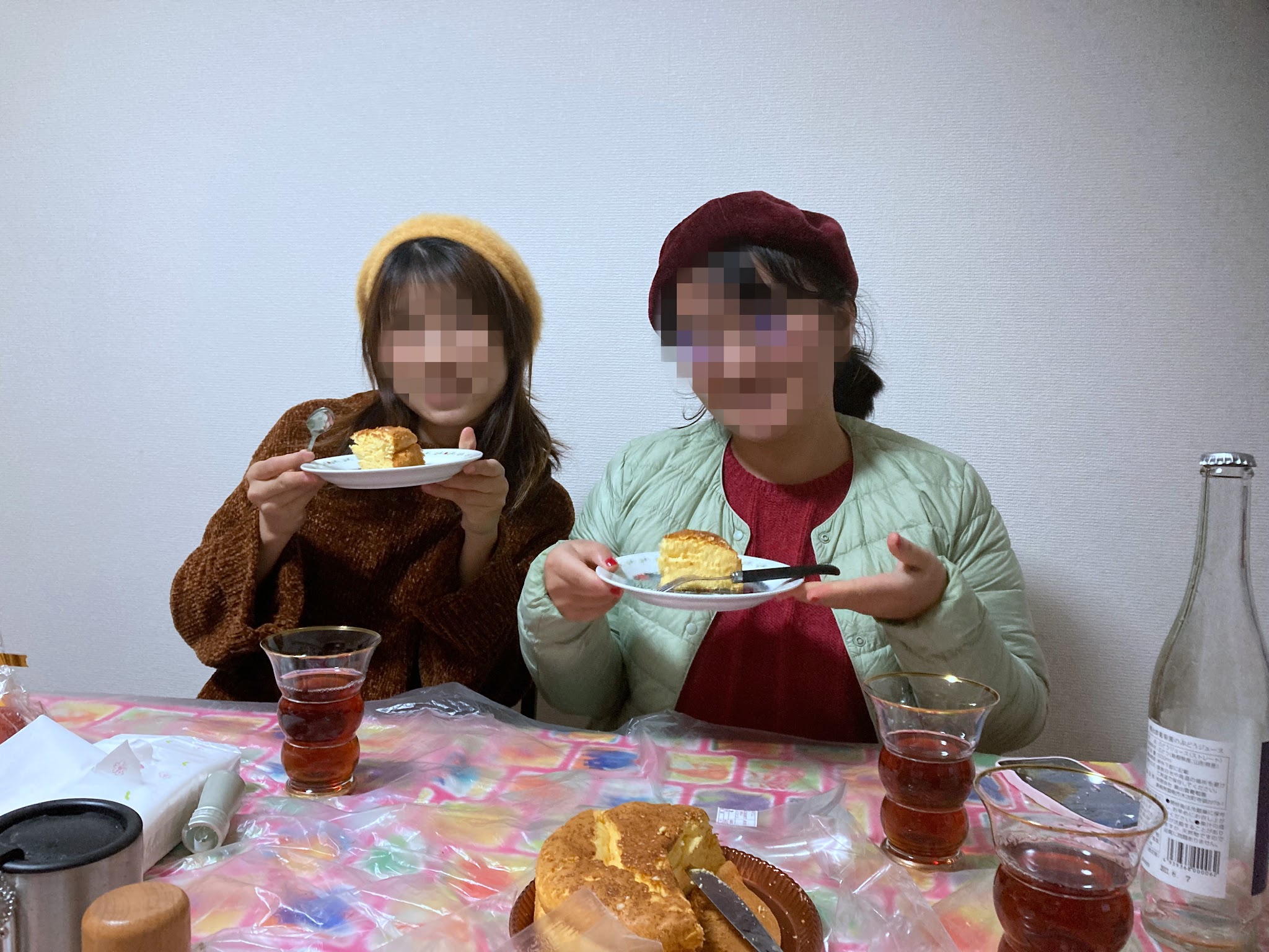 我们的高档下午茶,果汁是去年《初春岛根休闲游》买的,我一直等着她们来才喝,味道很浓的葡萄汁。