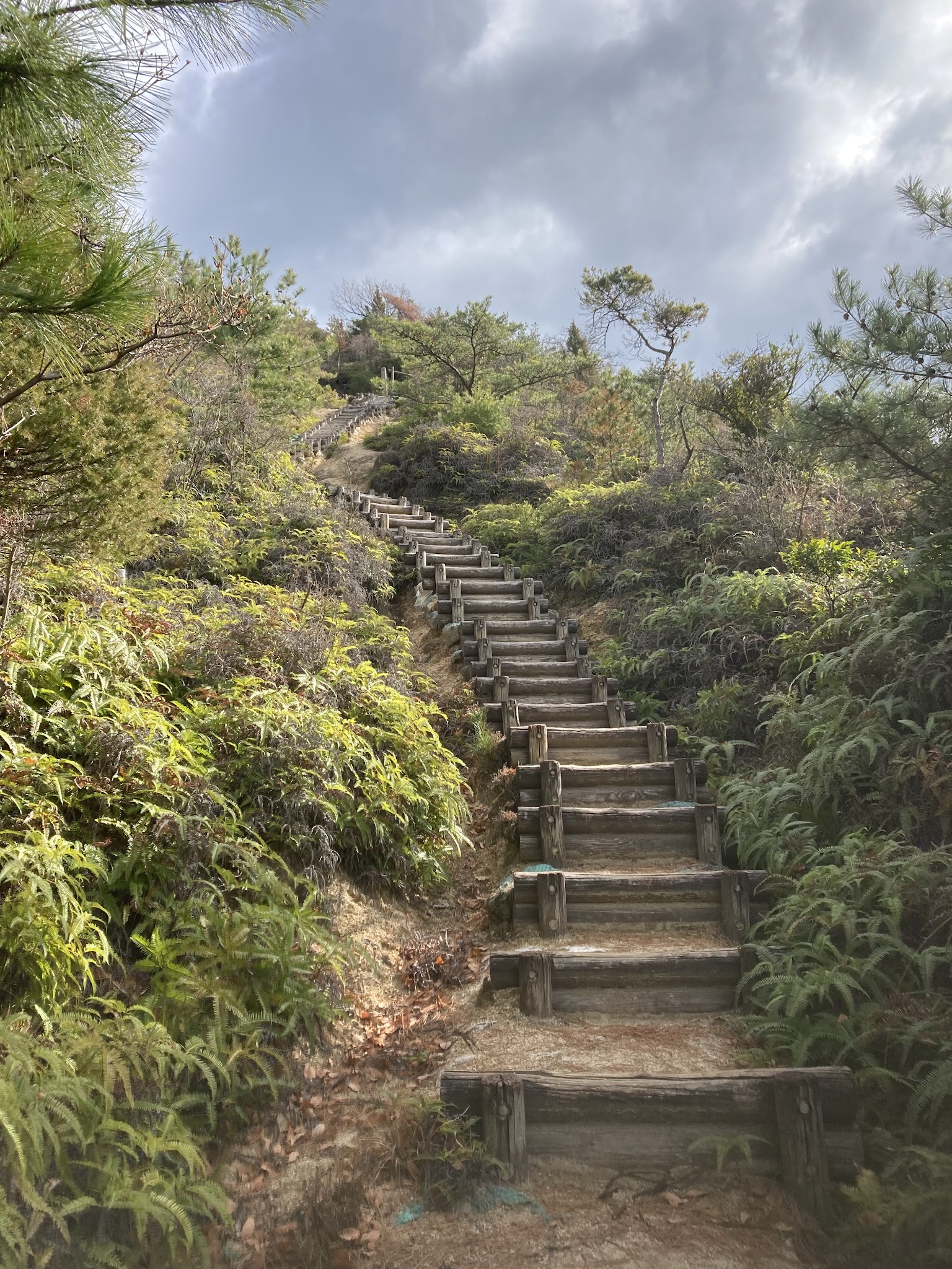 我们远处看到登山楼梯,就往楼梯方向走(下图中间)。