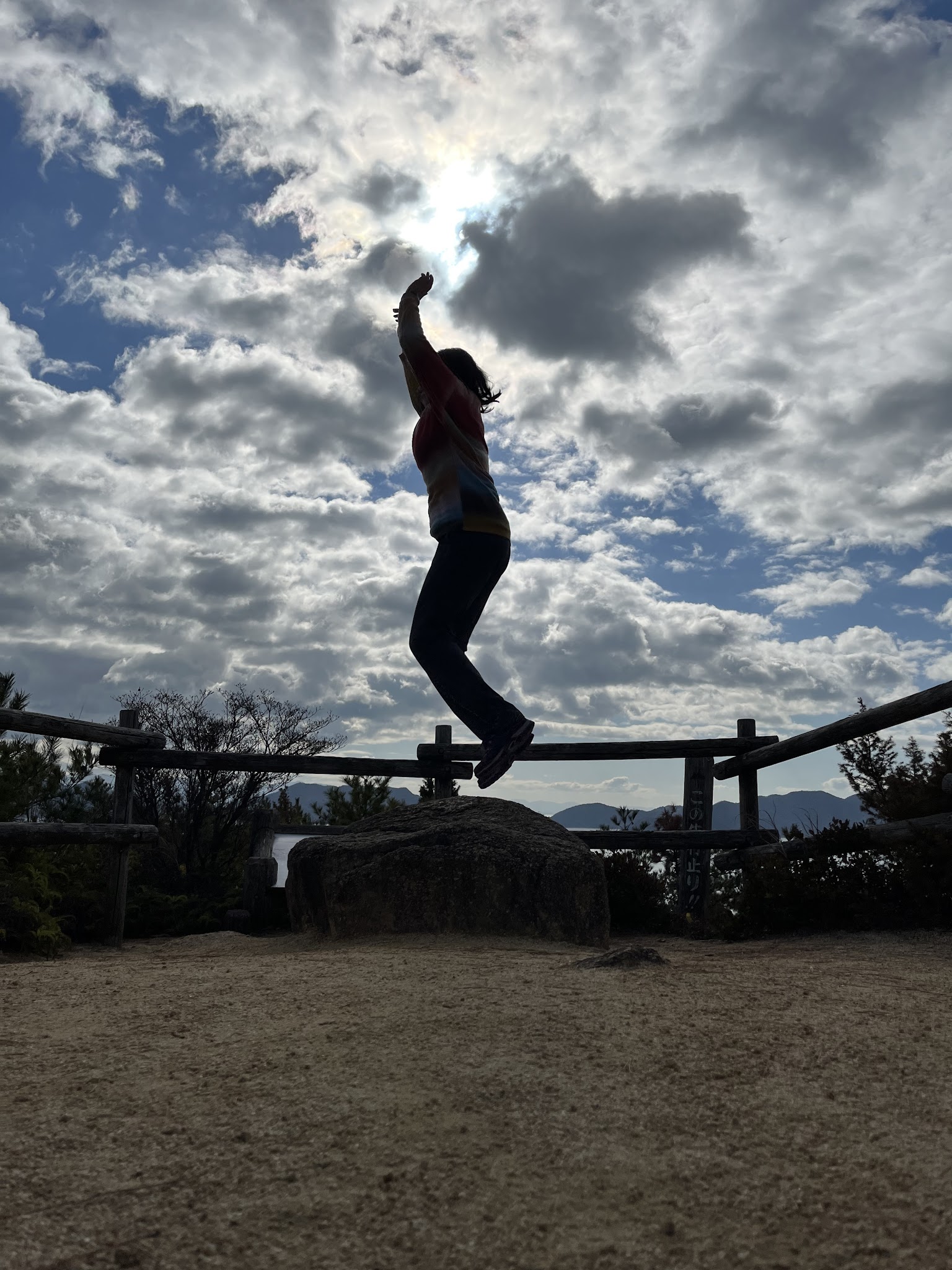 话说我们当时站在一块石头上跳。石头其实不很平我都不敢跳的太高。