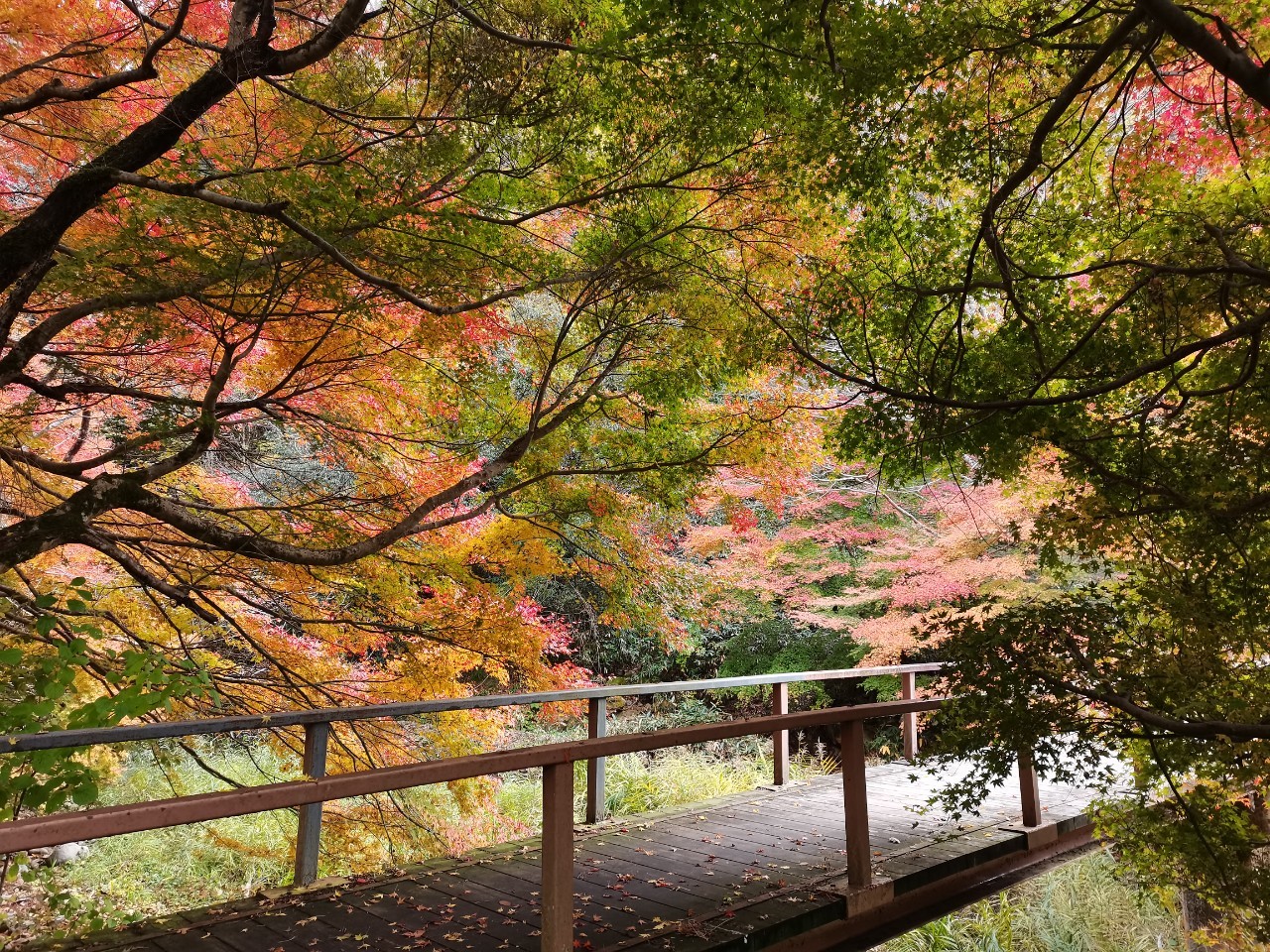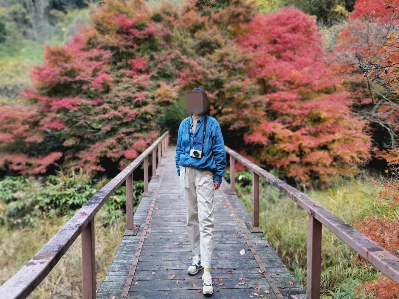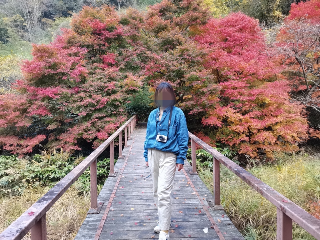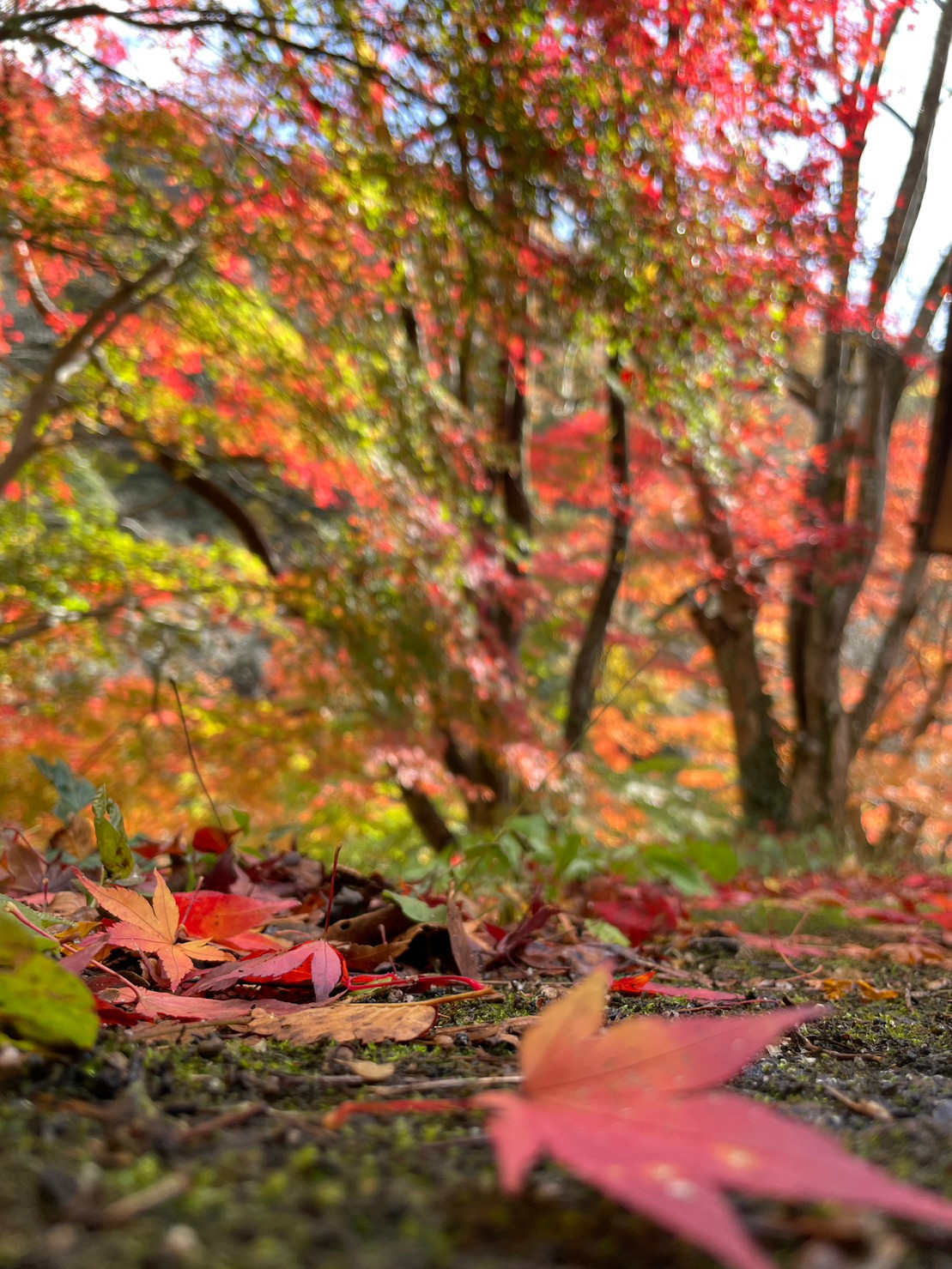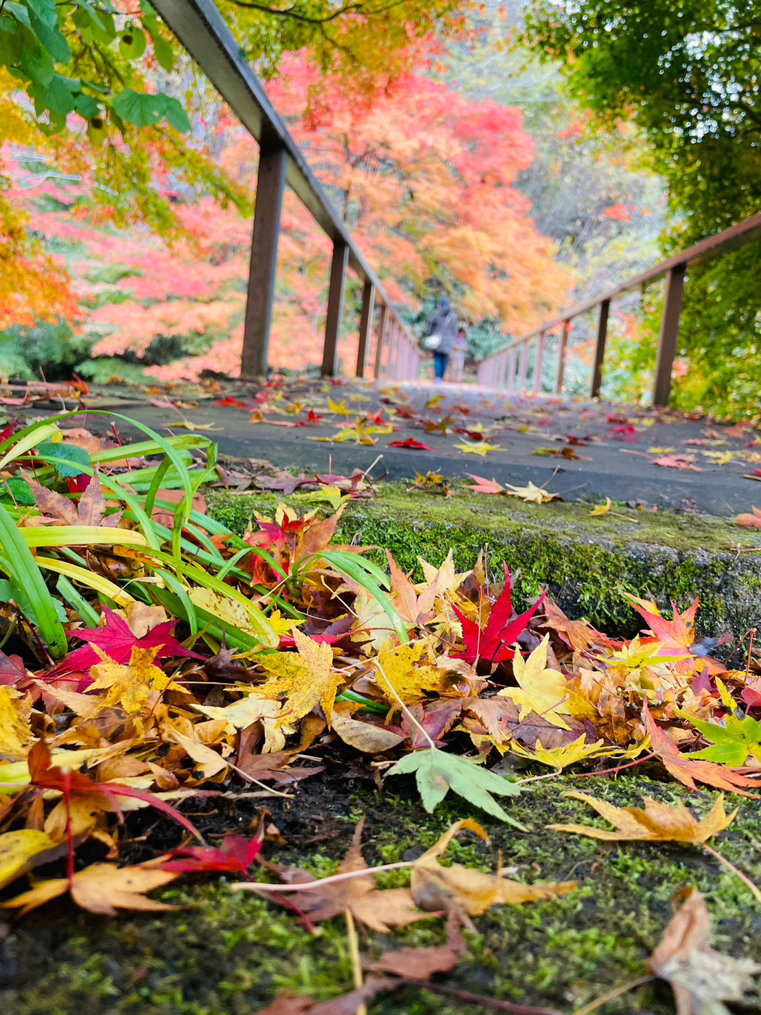 大家稍等一下,我要先在红叶下跑个步。