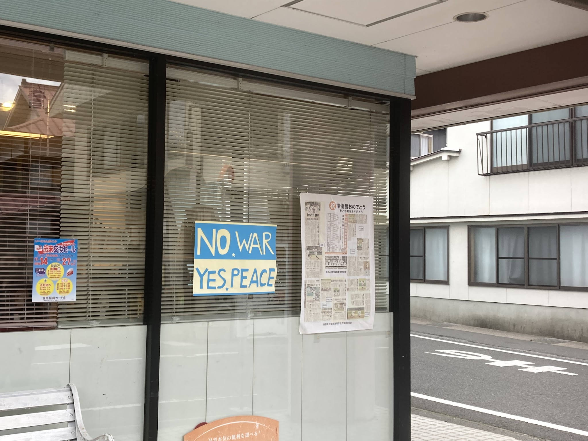 经过一个服装店,竟然挂了反战标语。