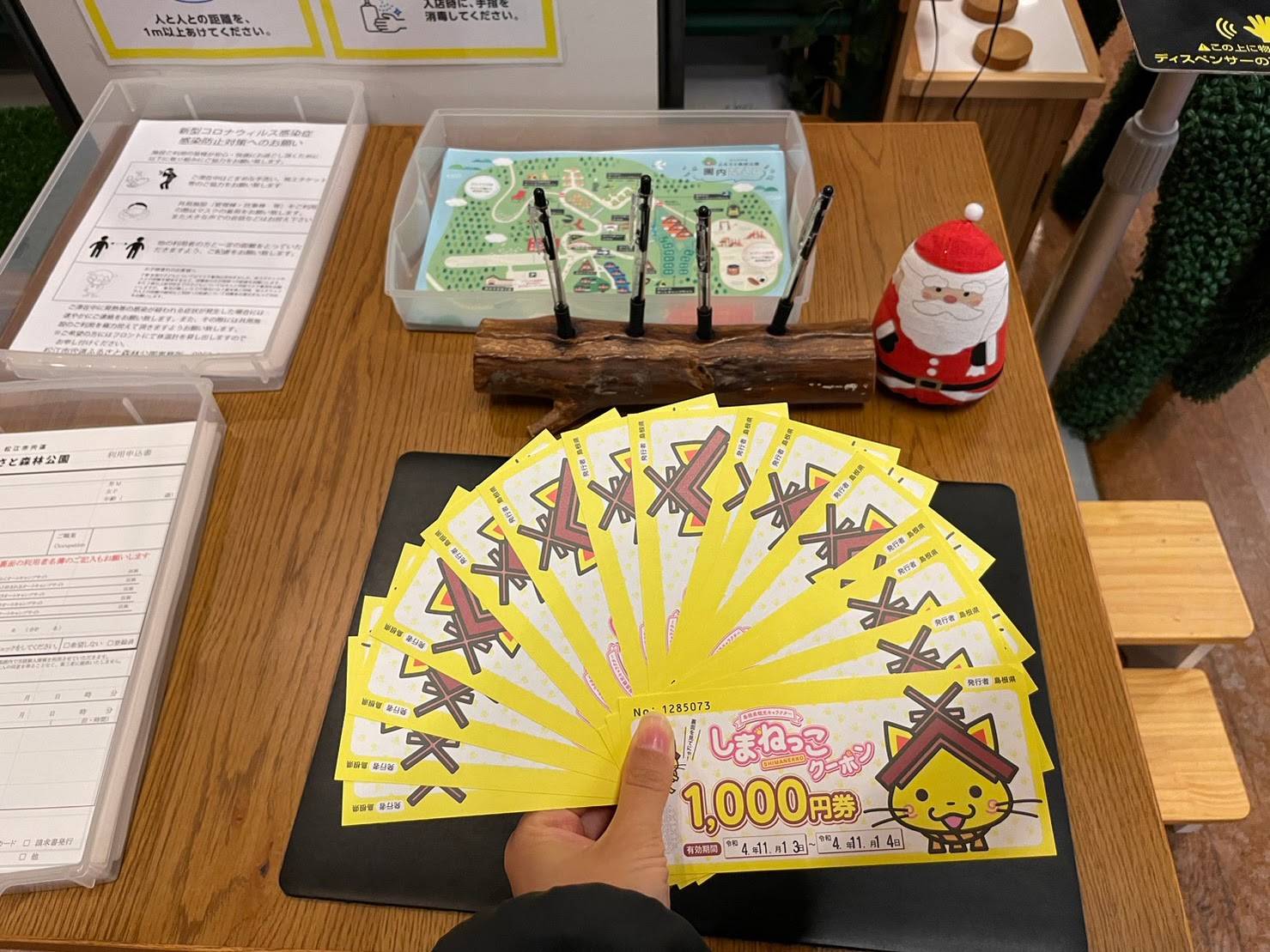 我们马上启程去目的地-豪华小木屋。原定计划四点入住,去到已经5点~这是森林公园,前台卖店都是以木制产品为主,快到圣诞节还有圣诞装饰。