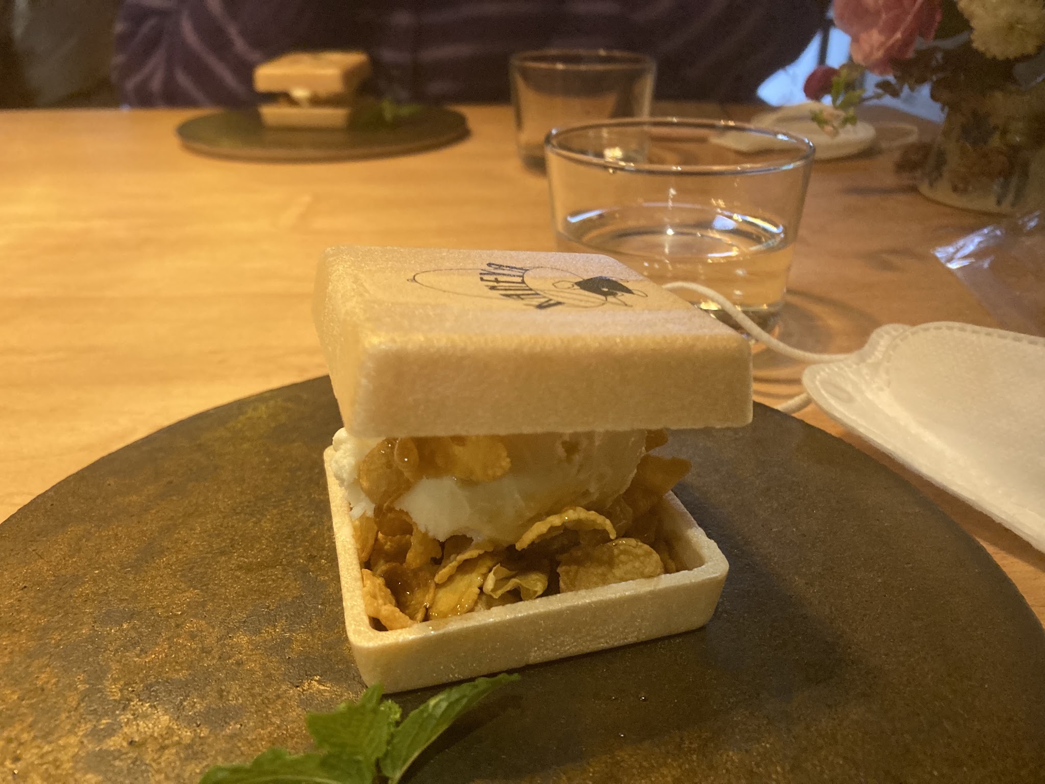 我们其实准备吃蛋糕的,不过当天竟然卖完。这是小地方人流不多,估计做的也不多,除了饮料能吃的就只有 アイスもなか(ice monaca)了。我们每人都吃了这个+一杯饮料。