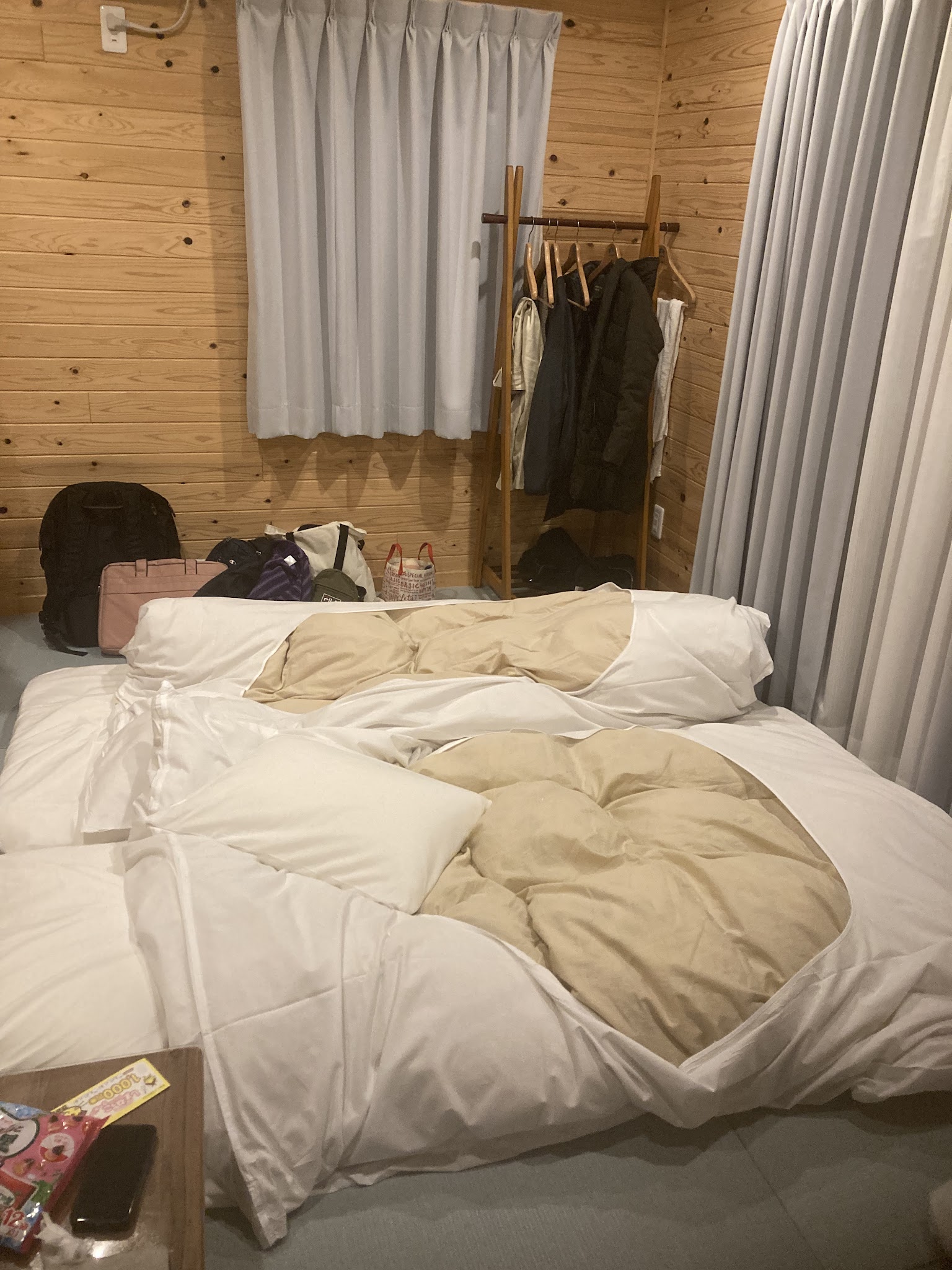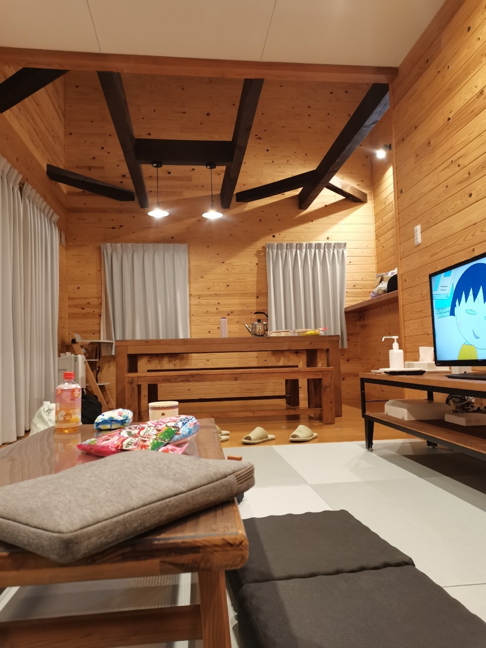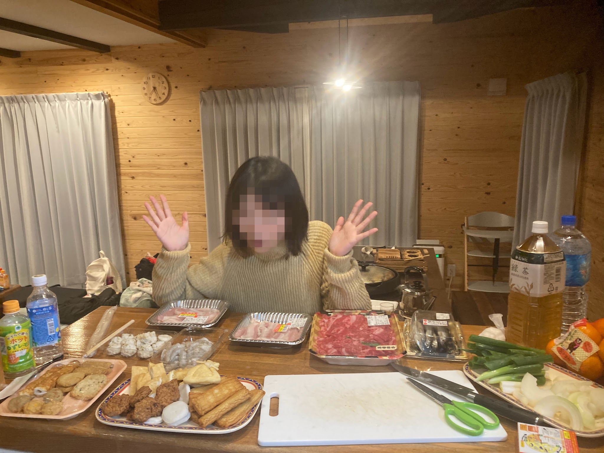 我们在附近的plant买菜,开车10分钟。每人还选了1000日元的超市礼品。 我们回到豪华小木屋,在开始准备晚饭前,我们先看看房。
