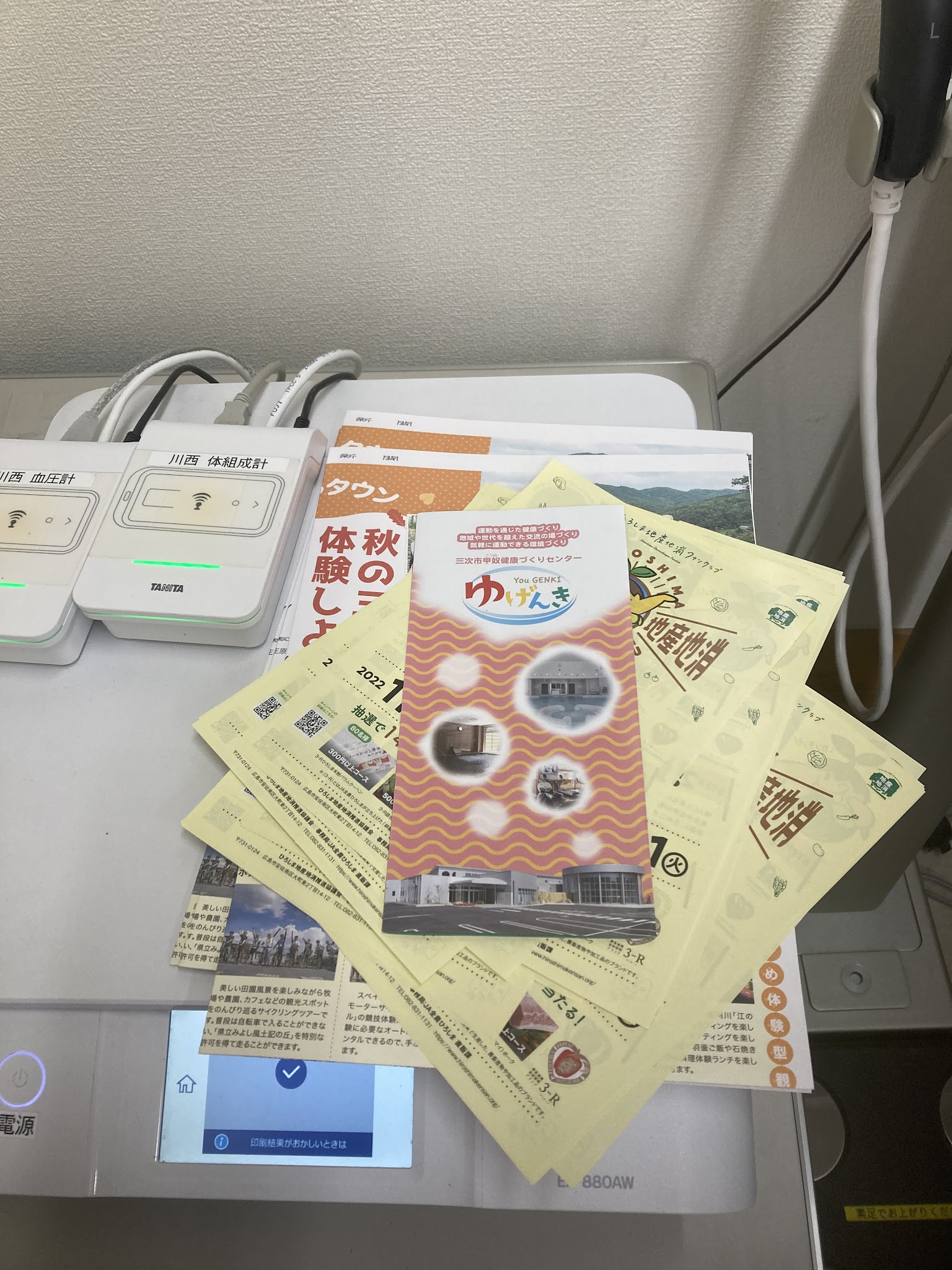 周日我们9点从大西条出发,沿着375国道北上到岛根,上E54高速前在川西乡全家上厕所,这是我们第三次经过,很熟悉!今次发现多了个身体检查的机器,属于三次市役所健康推进课,可以测量代谢,脂肪,水份等,还可以打印报告,免费的。但不知道为什么这部机器感应不了我,raku老师没问题...她顺利检查,拿到报告,我就不公开了。这台小小的机器也是让我学习了日本政府的健康推进政策。