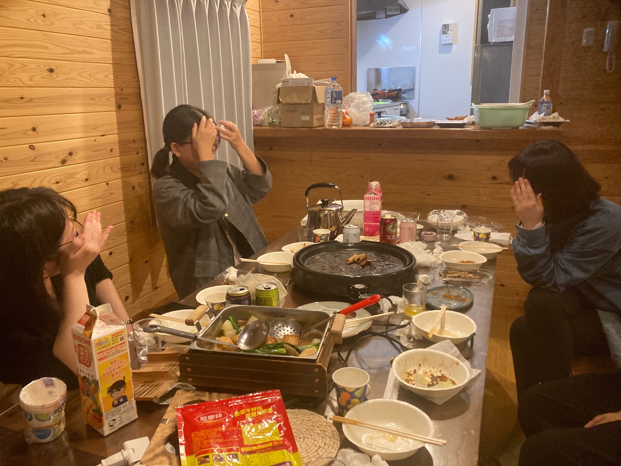 最后打包外卖,还好我带来的橡筋及外卖盒子够用,下次得多带点...最后刚好一人一盒。