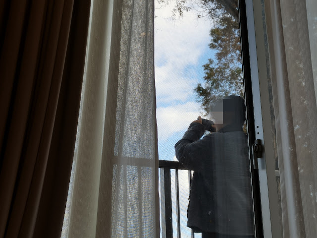 第二天早上,一望窗外是晴天,看到红叶了,很漂亮。