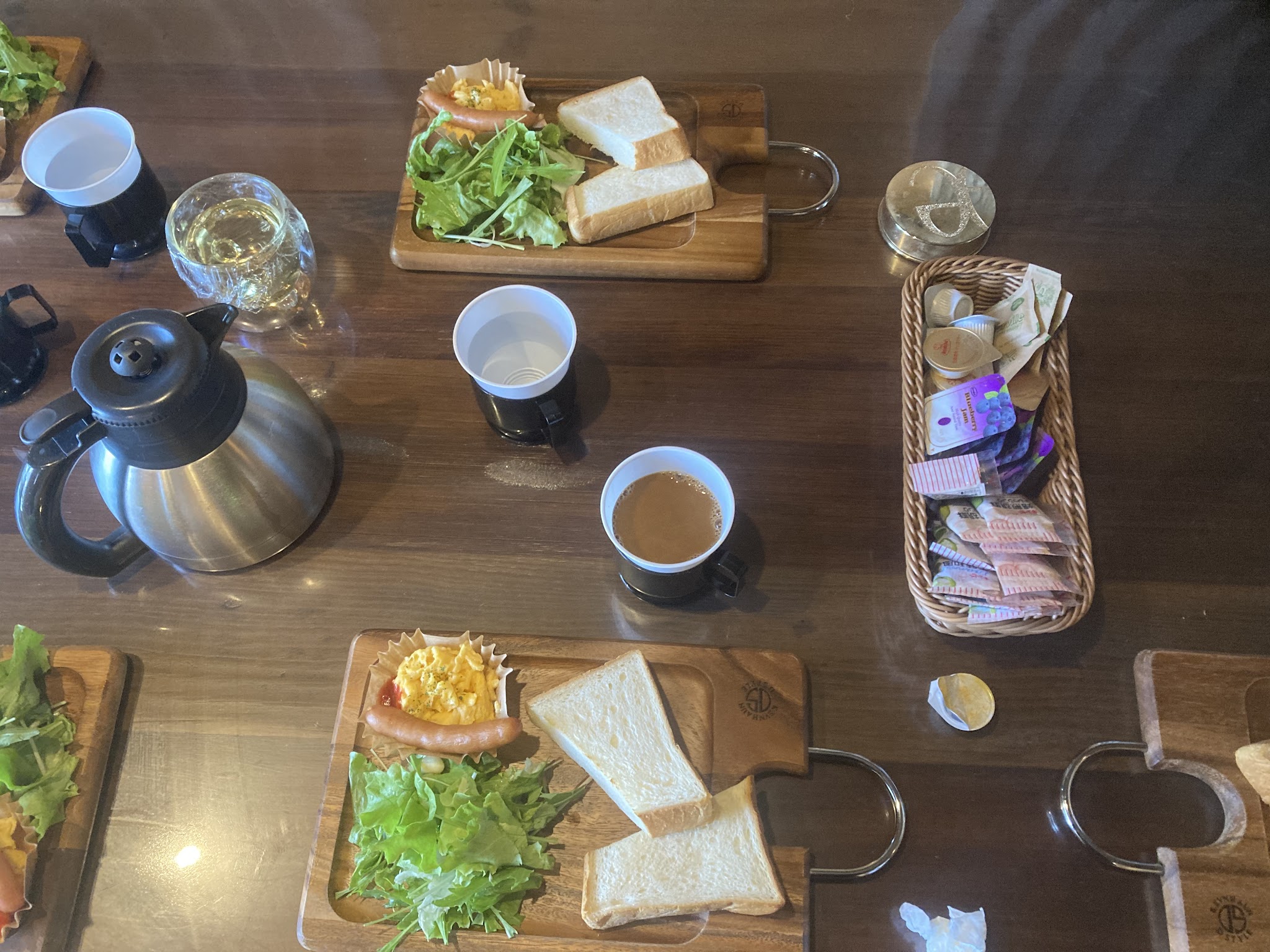 打开很惊喜,咖啡店水准。 吐司还可以配果酱及黄油。而且烤了一段时间吐司还是脆的。
