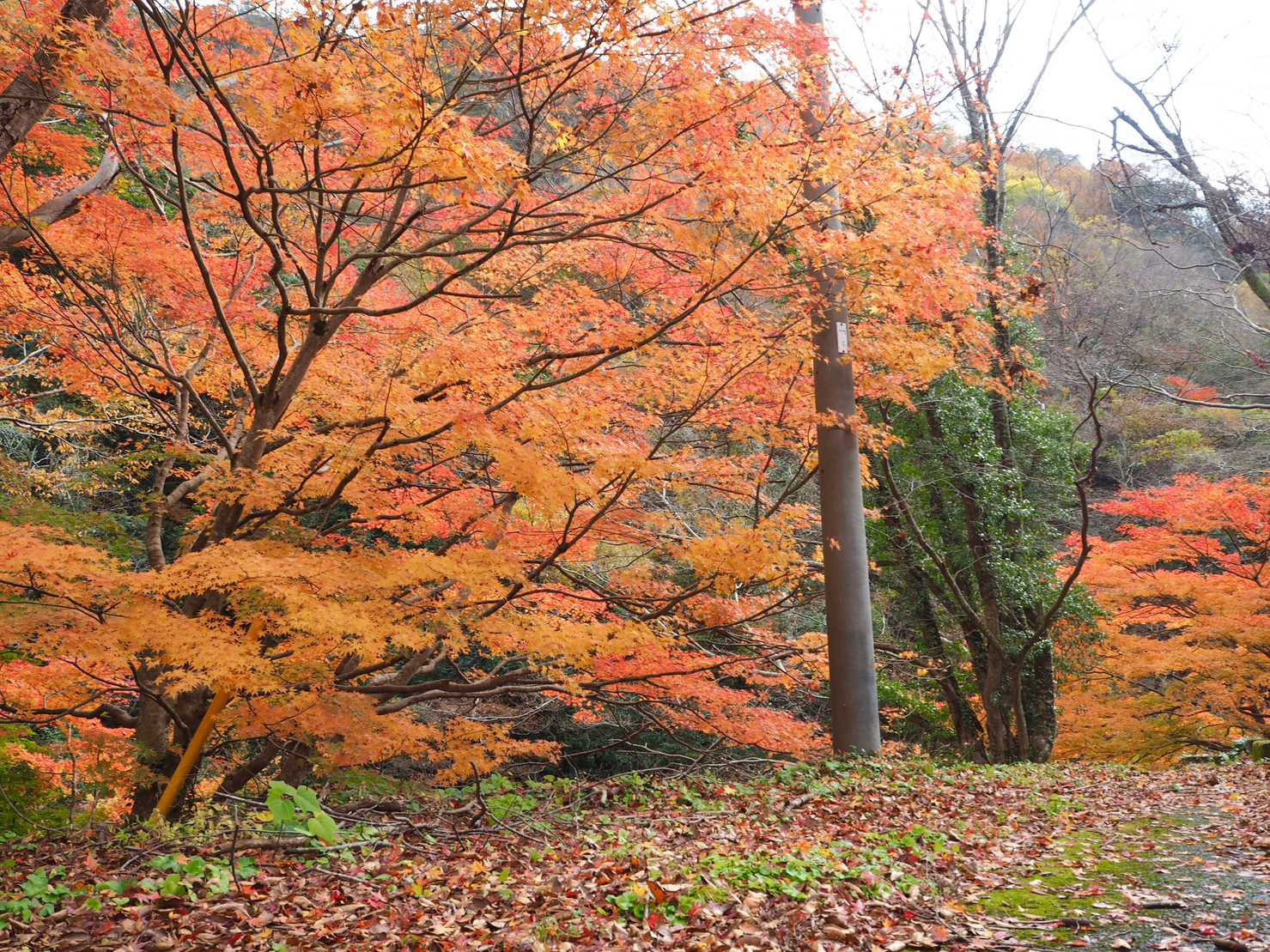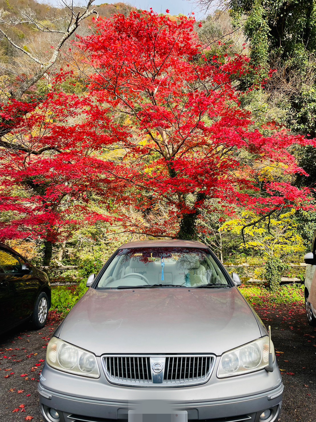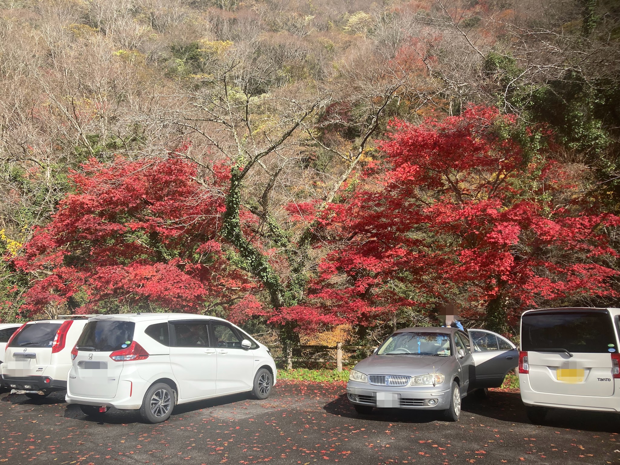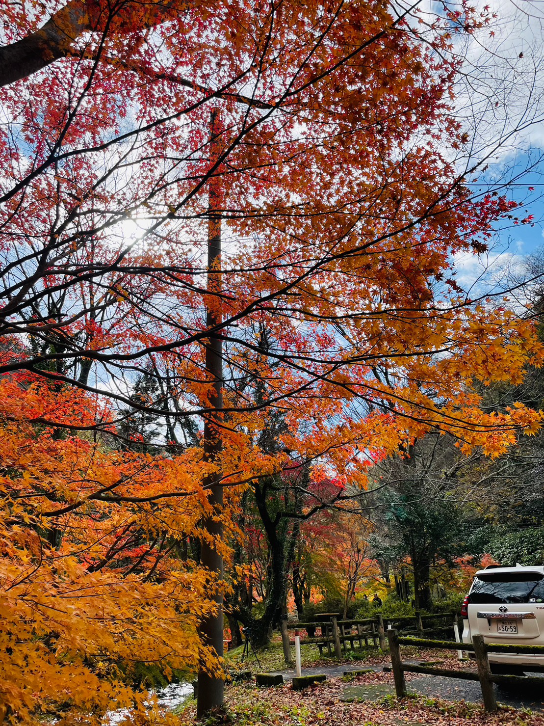 今天虽然是周一,不过车比我想象中多呢。这里的红叶就在停车场开始。