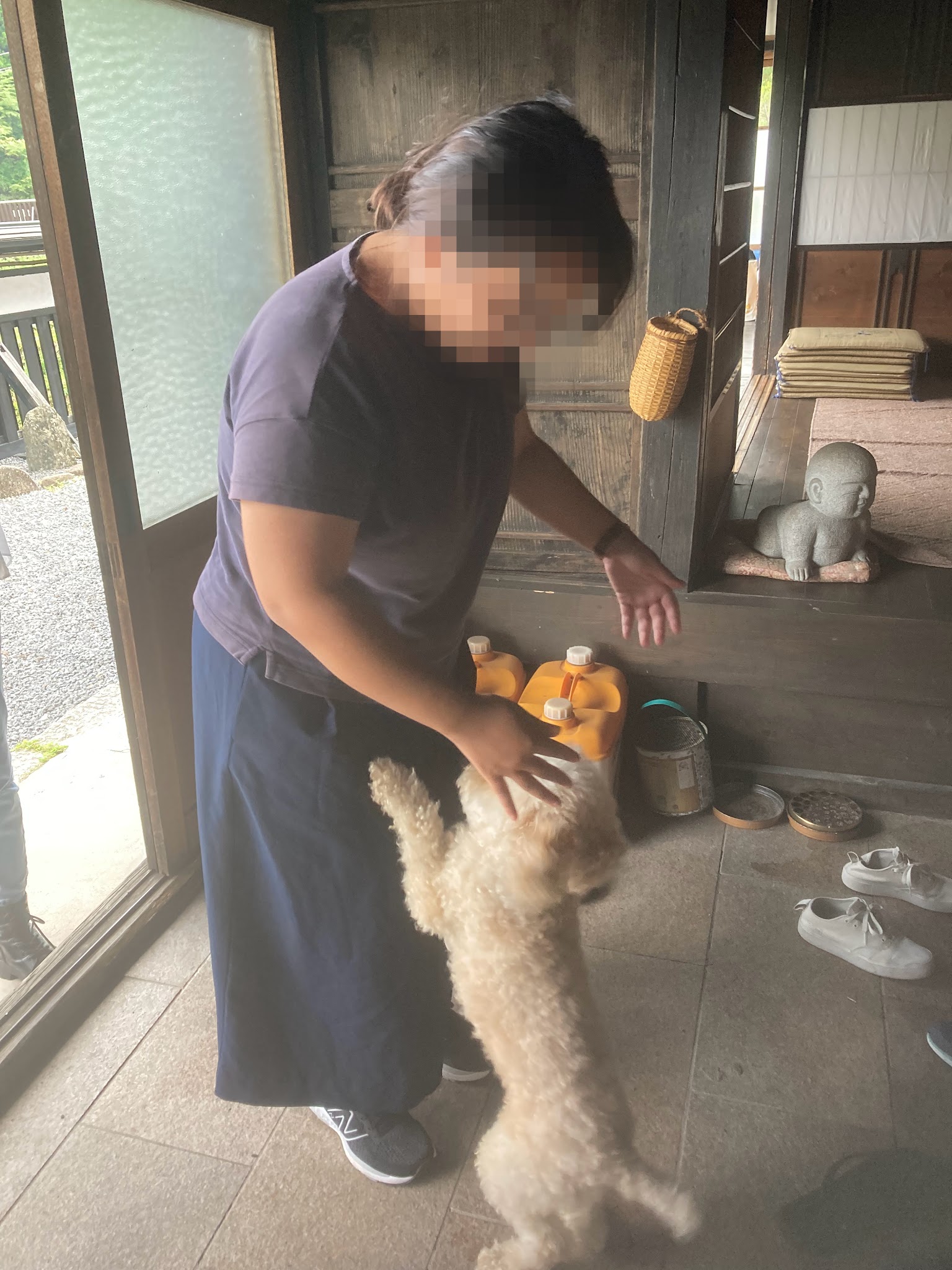 他72岁,带着泰迪狗happy来,原来在大公司工作,现在在宫岛附近住。他给我们准备了好多东西,啤酒,红豆(用来做鯛焼き),还有花火。他还送了我们500克野猪肉还有很多冰,晚上吃烧烤你们就知道有多么的奢华了(贅沢)。