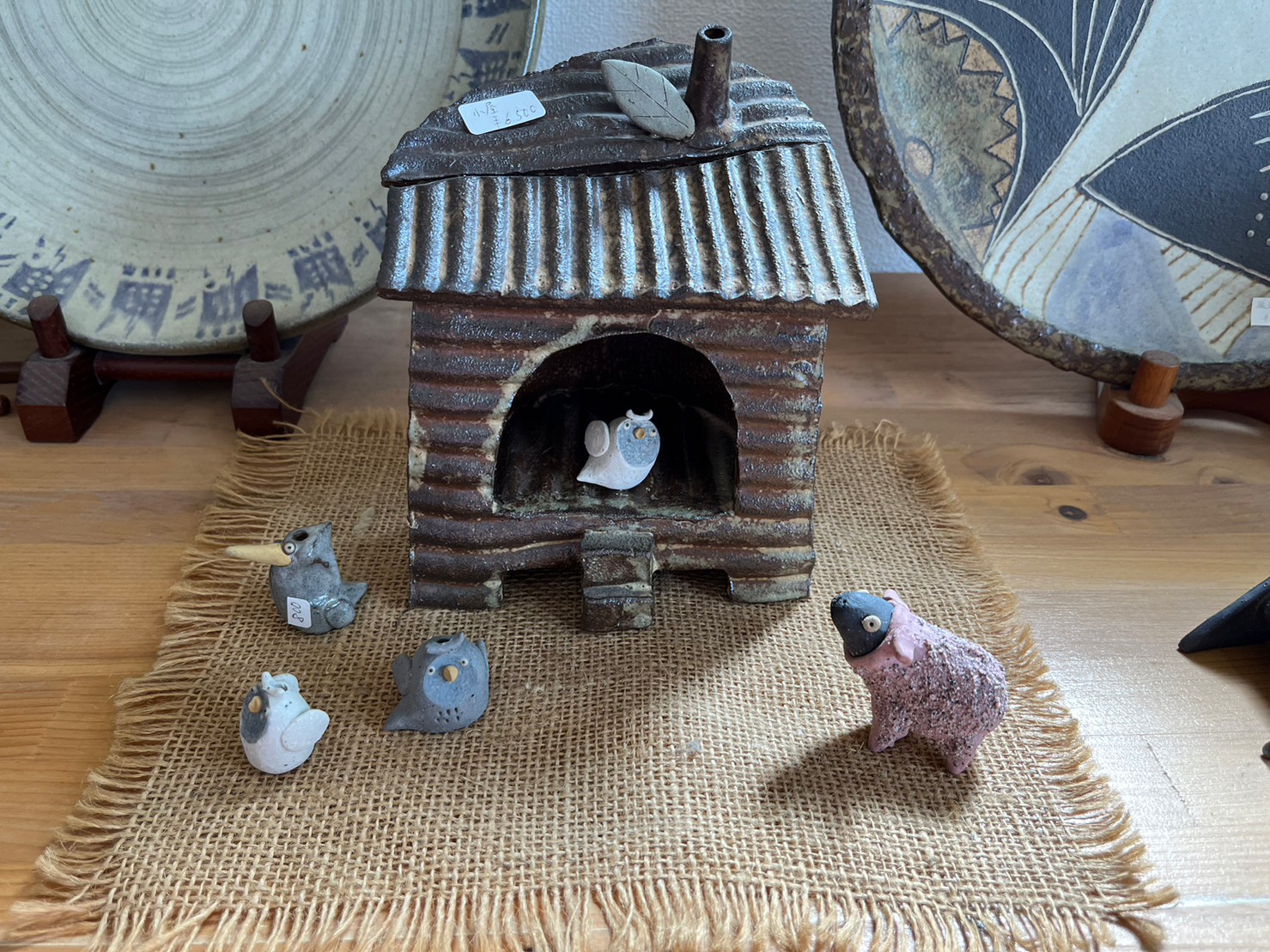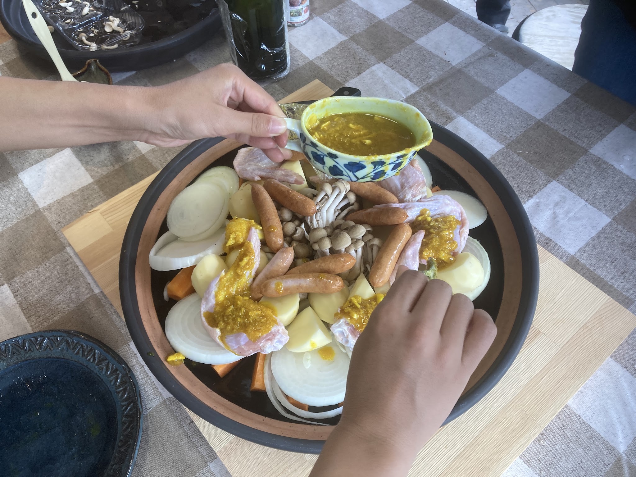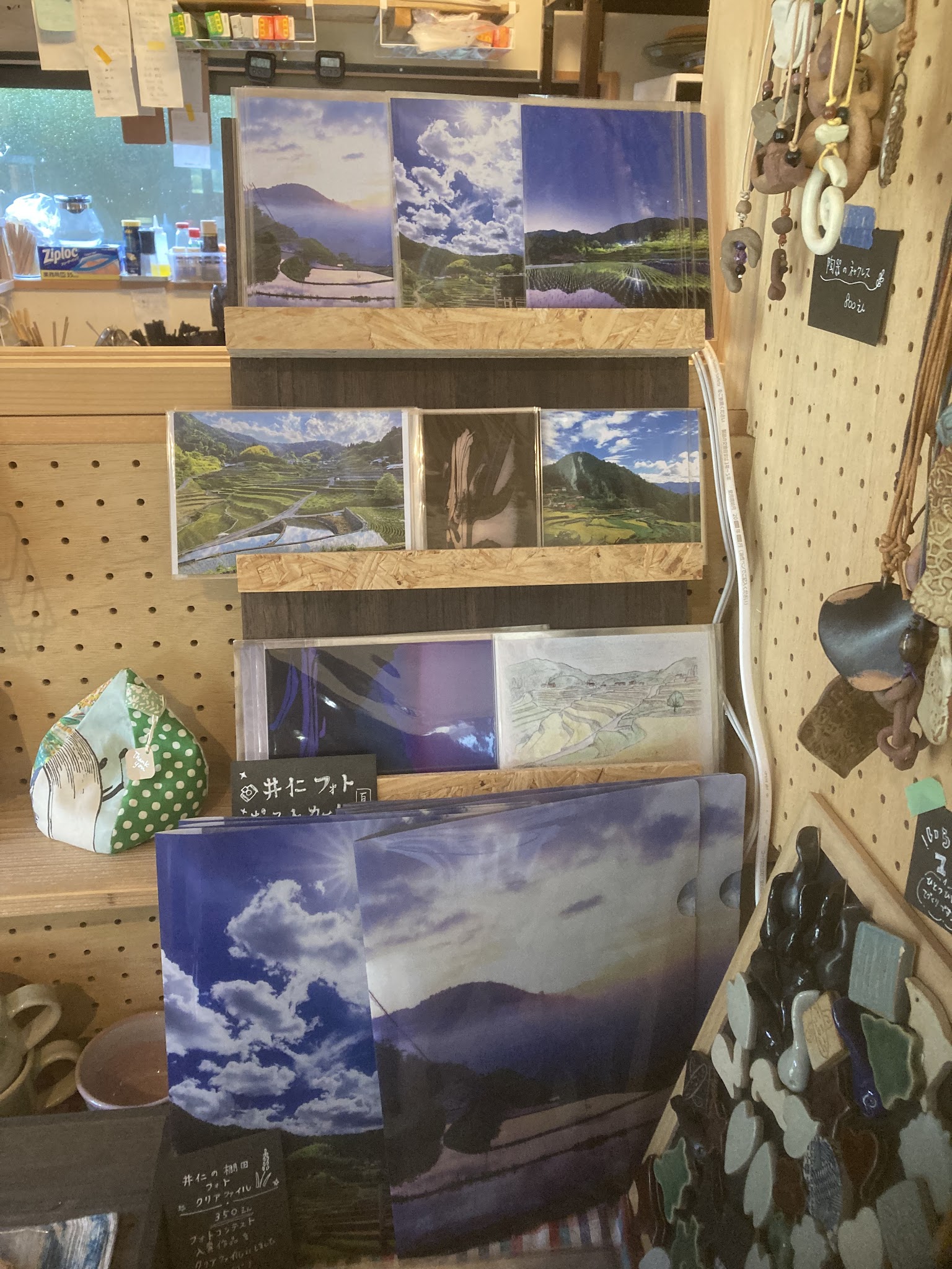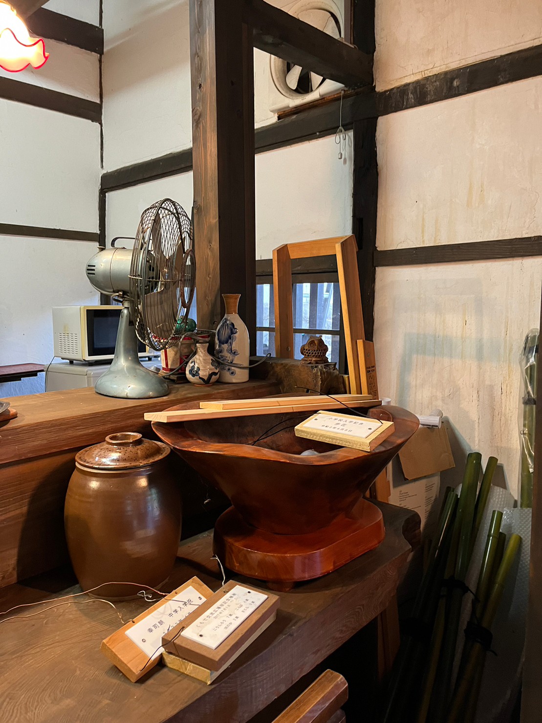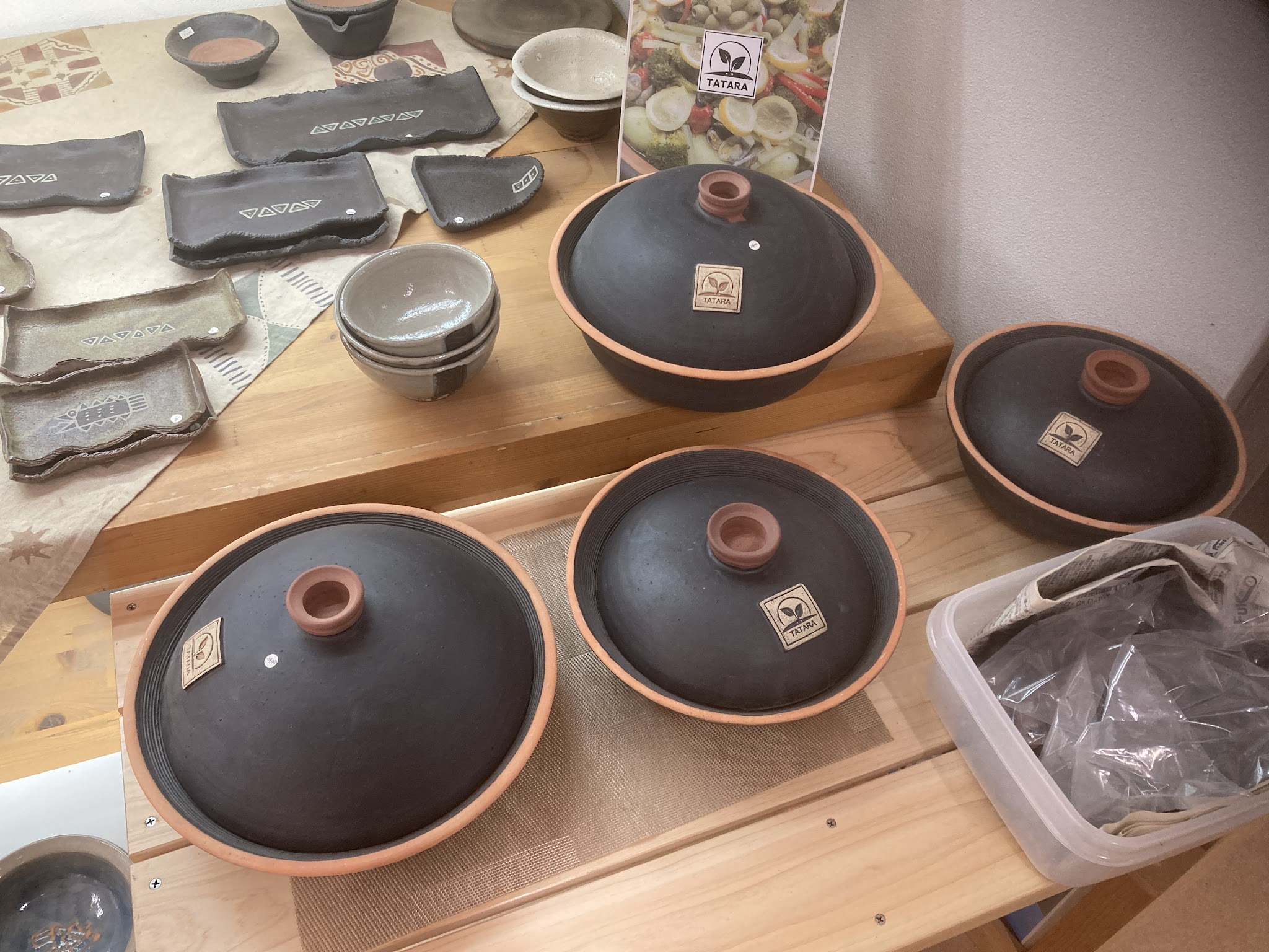 我们玩的料理+陶艺套餐,应该是1点完的,不过之后的陶艺客人不用这个地方,我们就可以慢慢坐。店家女主人也陪我们聊天,说了自己的故事。男主人是本地人,他们夫妻去过冲绳学艺。男主人陶艺获过奖的。后来他们回到老家开店。80年代泡沫经济前,东西一做出来就卖的出去,后来日本经济放缓,他们也开始转型,尝试搞体验,现在店已经开了30年呢。我们聊到两点,她就带我们去卖他们家产品的店,给我们介绍了。