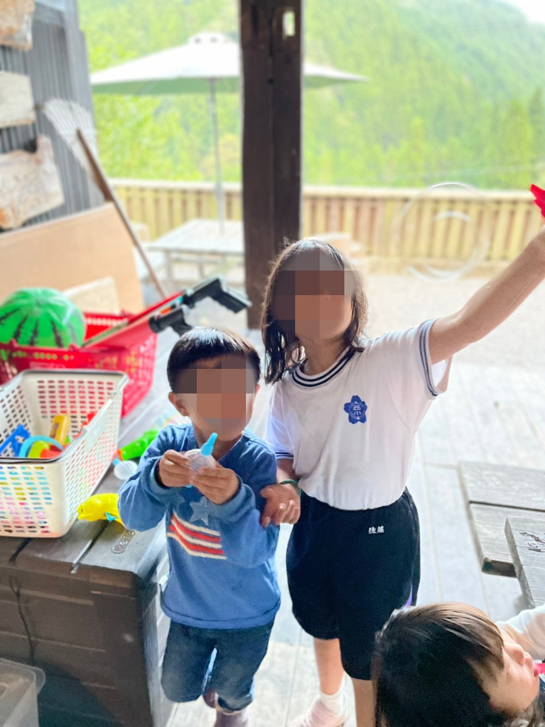 吃完早饭我们去对面的小院子玩,看到吊床洗碗公主就情不自禁爬上去...