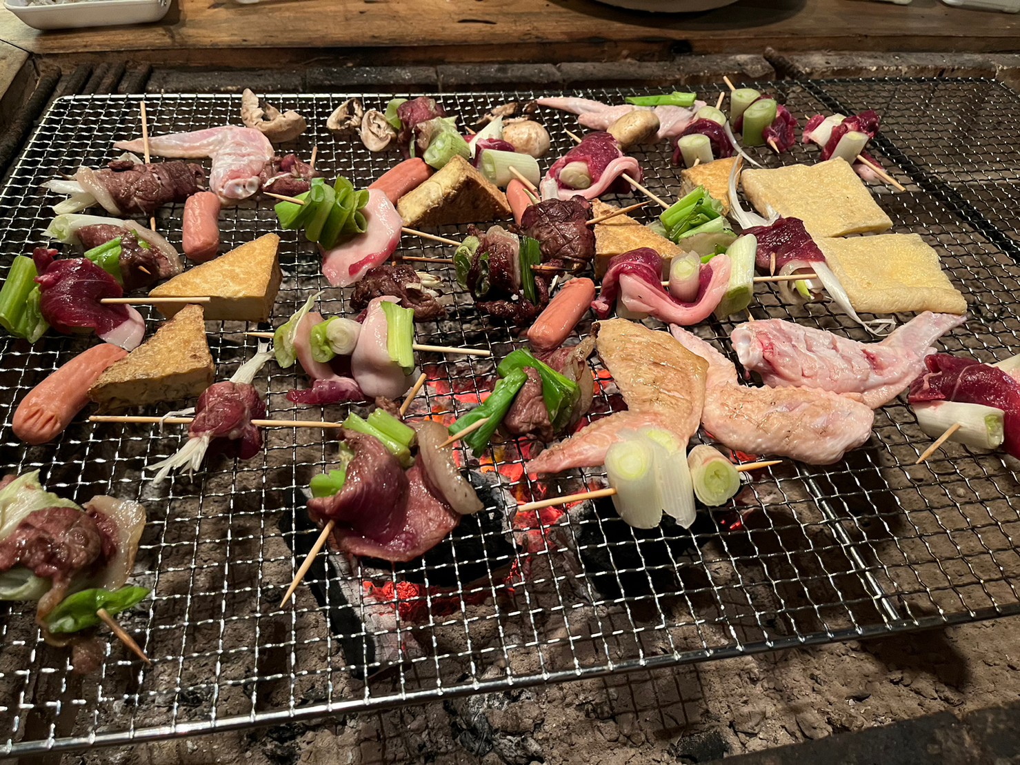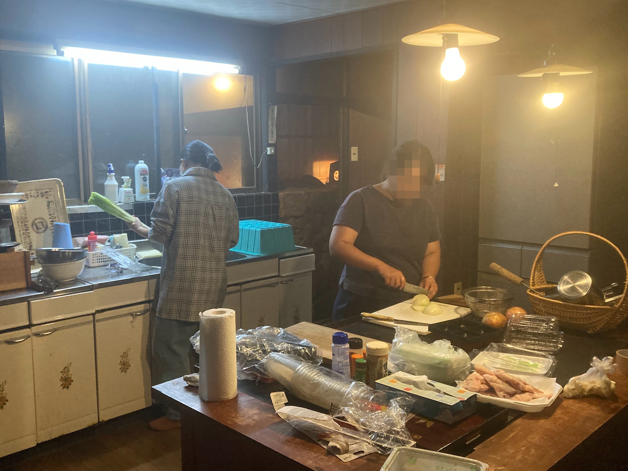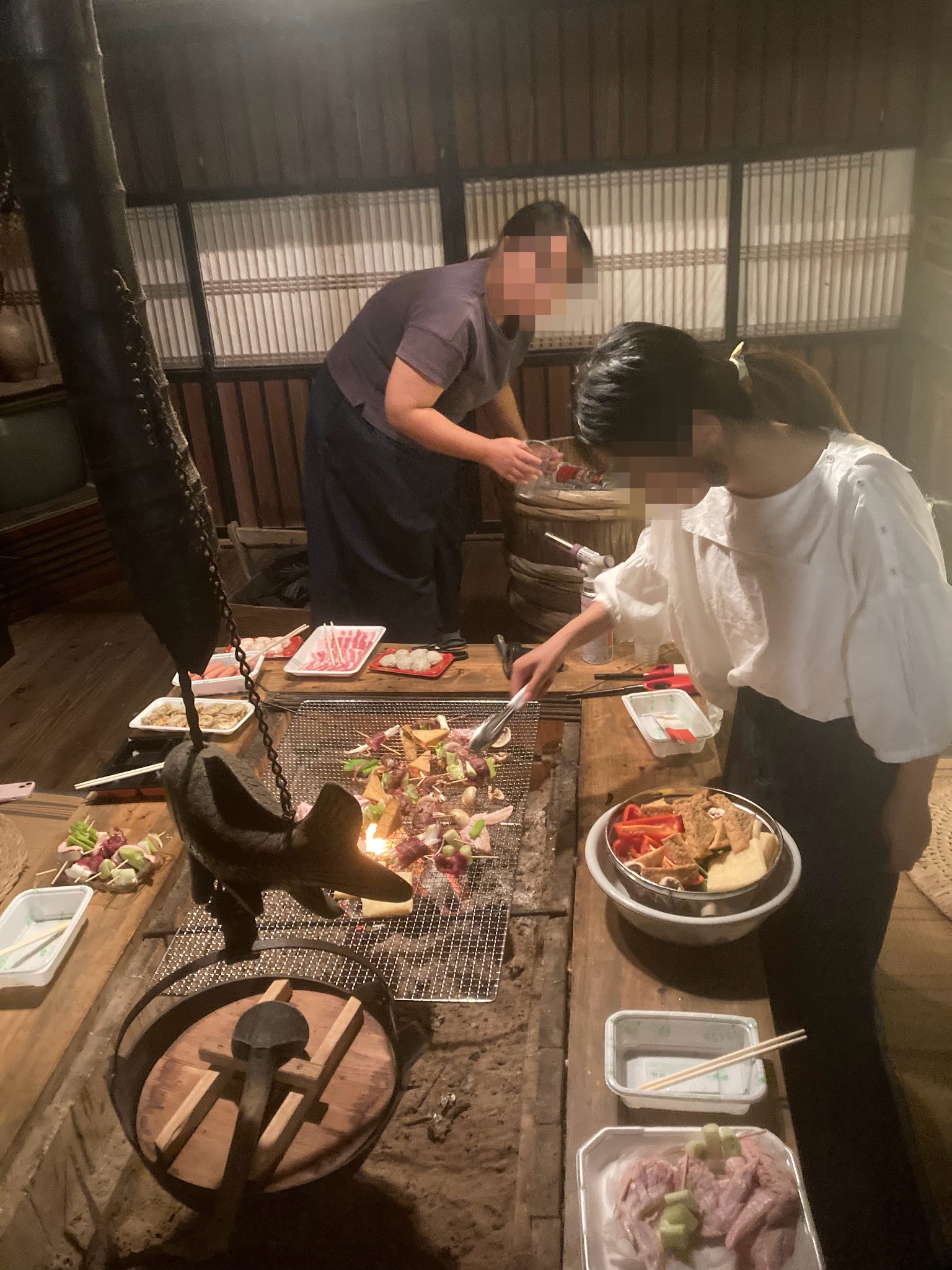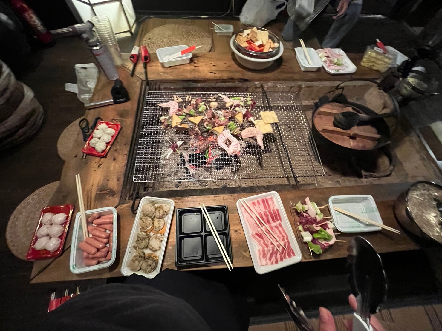 我们住的しまた能容纳最多10人,屋主花了10年时间改装,有两个温泉,还有秋千,吊床,跷跷板,囲炉裏,烧烤等。屋主还为小朋友准备了玩吹泡泡的东西,晚上还可以放烟火。厨房还有铁板,可以做お好み焼き,其他工具还包括かまど(农家烧柴做饭的工具),鯛焼き,章鱼小丸子等,一天绝对吃不完的。
