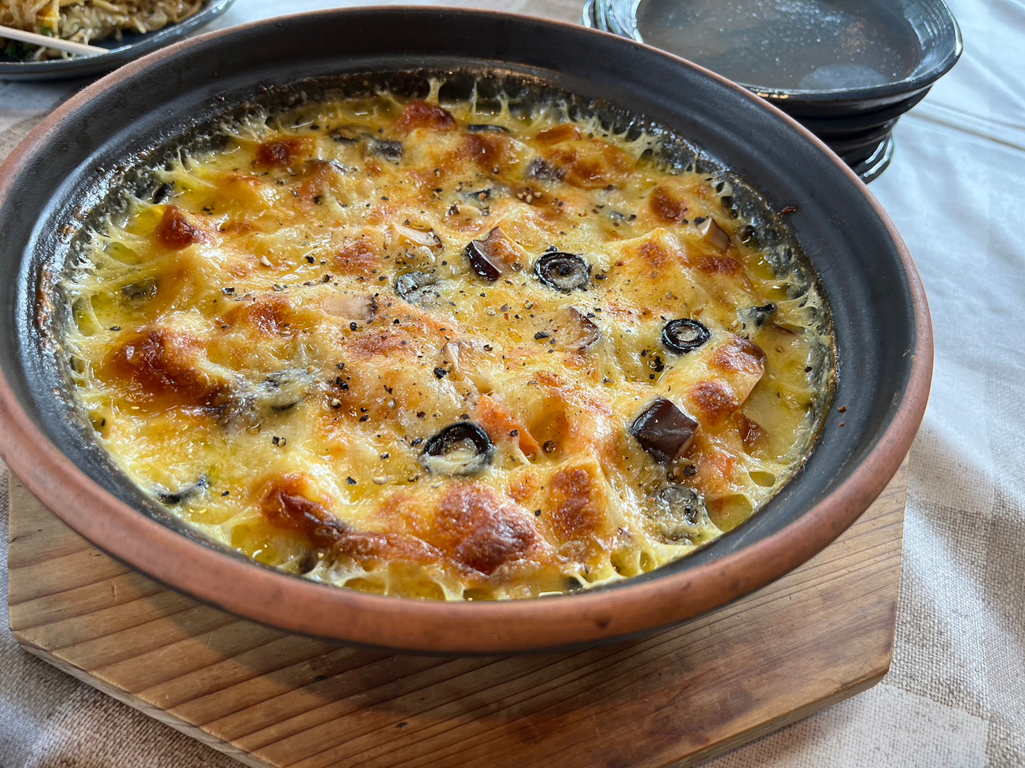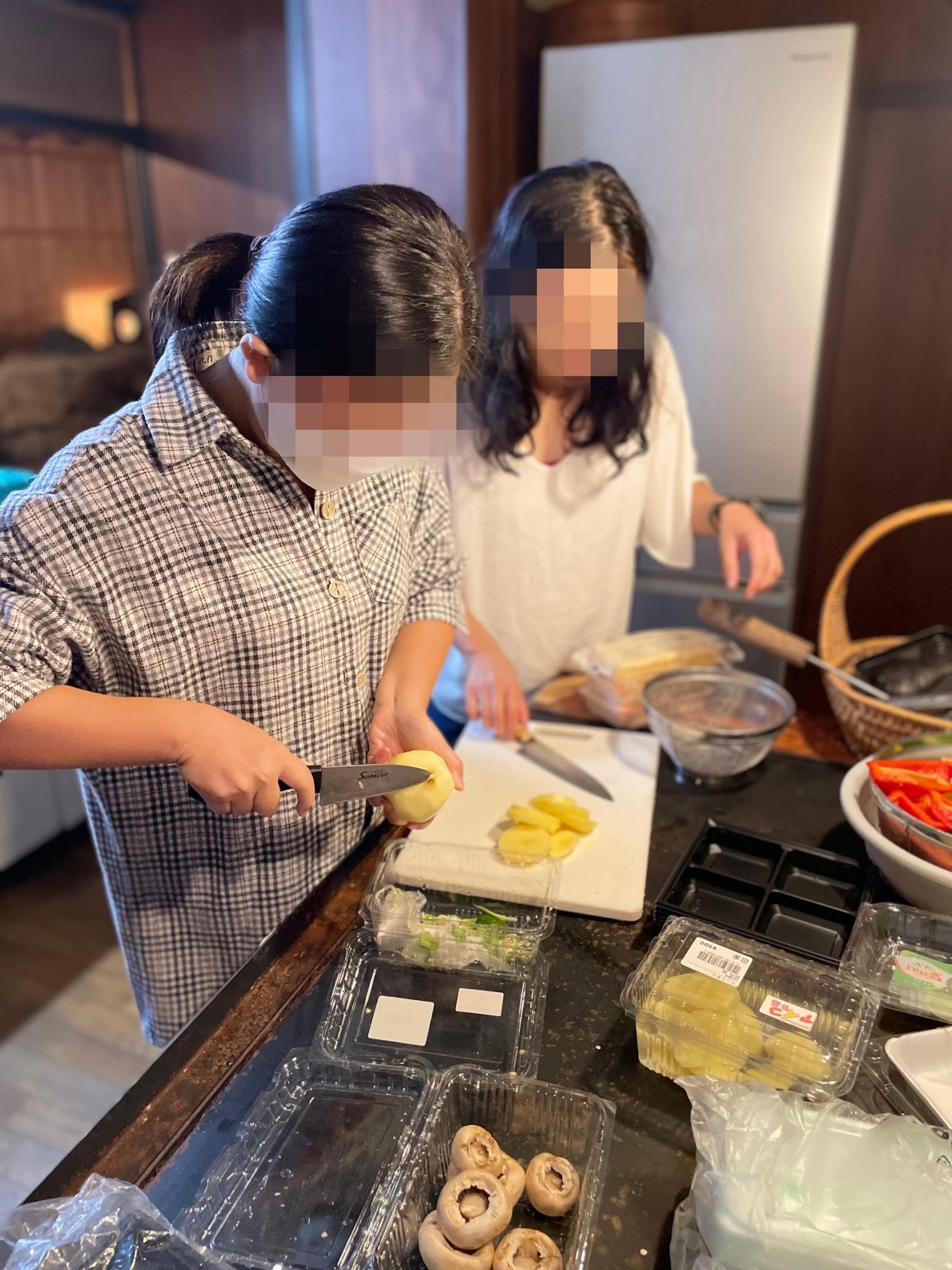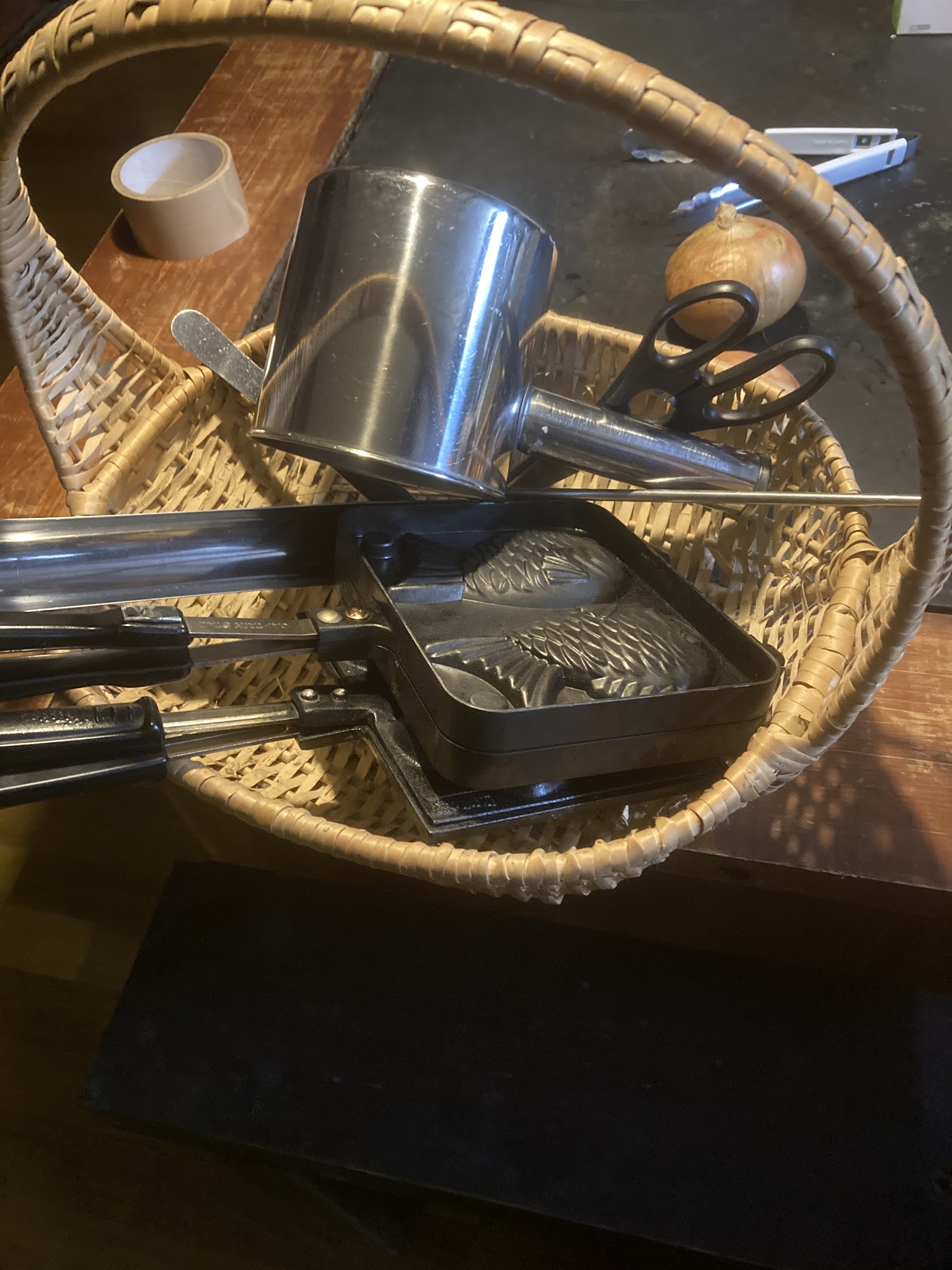 开始做饭了~今天我们午饭有三个菜,我们只帮忙做最大的一个。另外两个是奶酪海鲜土豆及广岛名物广岛烧。店家说用这个锅做出来的味道跟其他地方的广岛烧不一样,我们期待着。