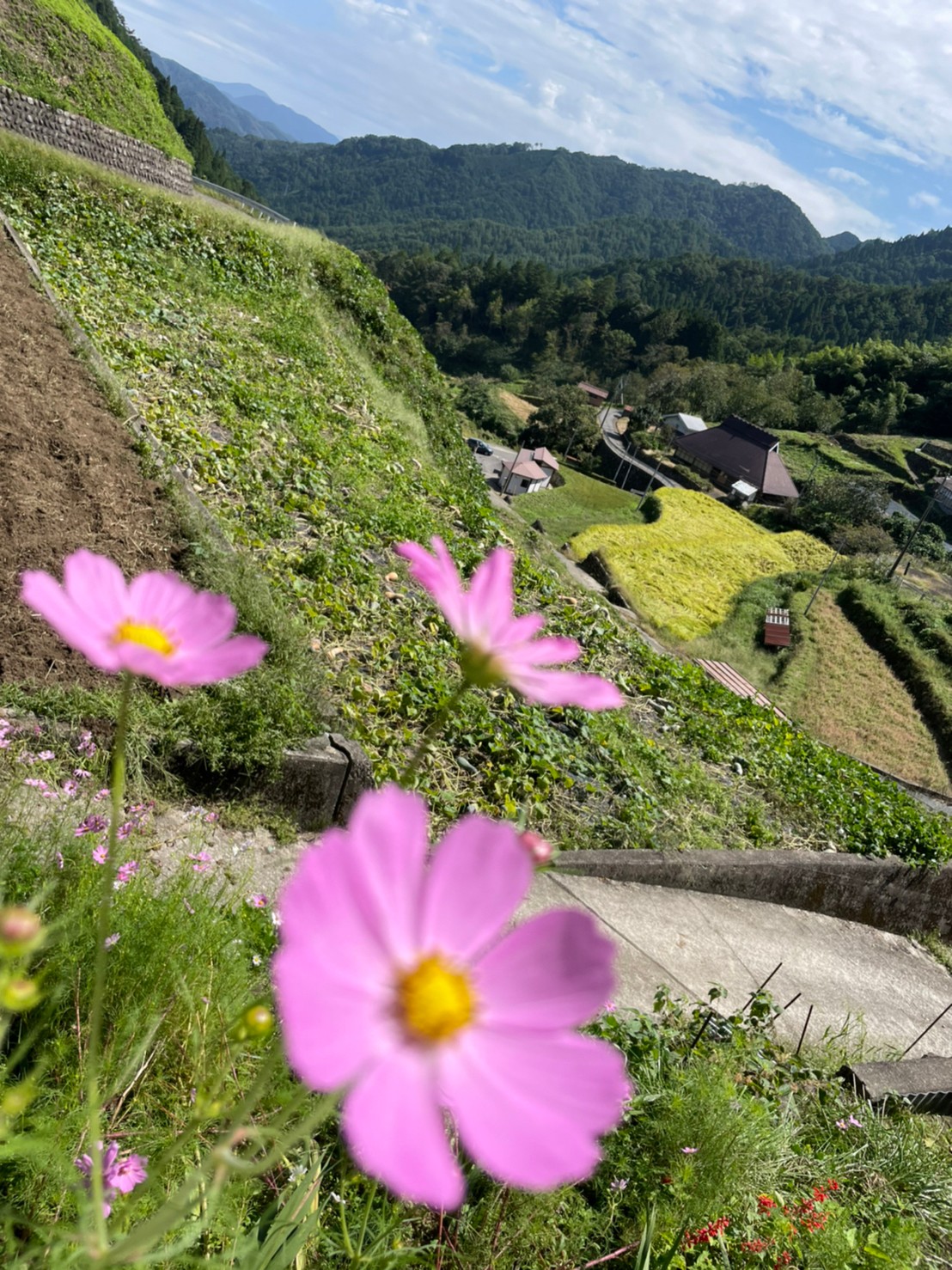 早9点在大西条出发,走E2高速约10点半到井仁棚田,路上cai带了很多零食给我们吃。棚田海拔四五百米,到之前一路上坡,还有部分单程路,最后还要经过单程隧道(第一次)。单程路避车处不太多的,还好平时去没遇到对头车。9月底不是绣球花开的日子,不过这里有。车上两位看过《千与千寻》的童鞋说过了隧道后好像《千与千寻》的世界。
