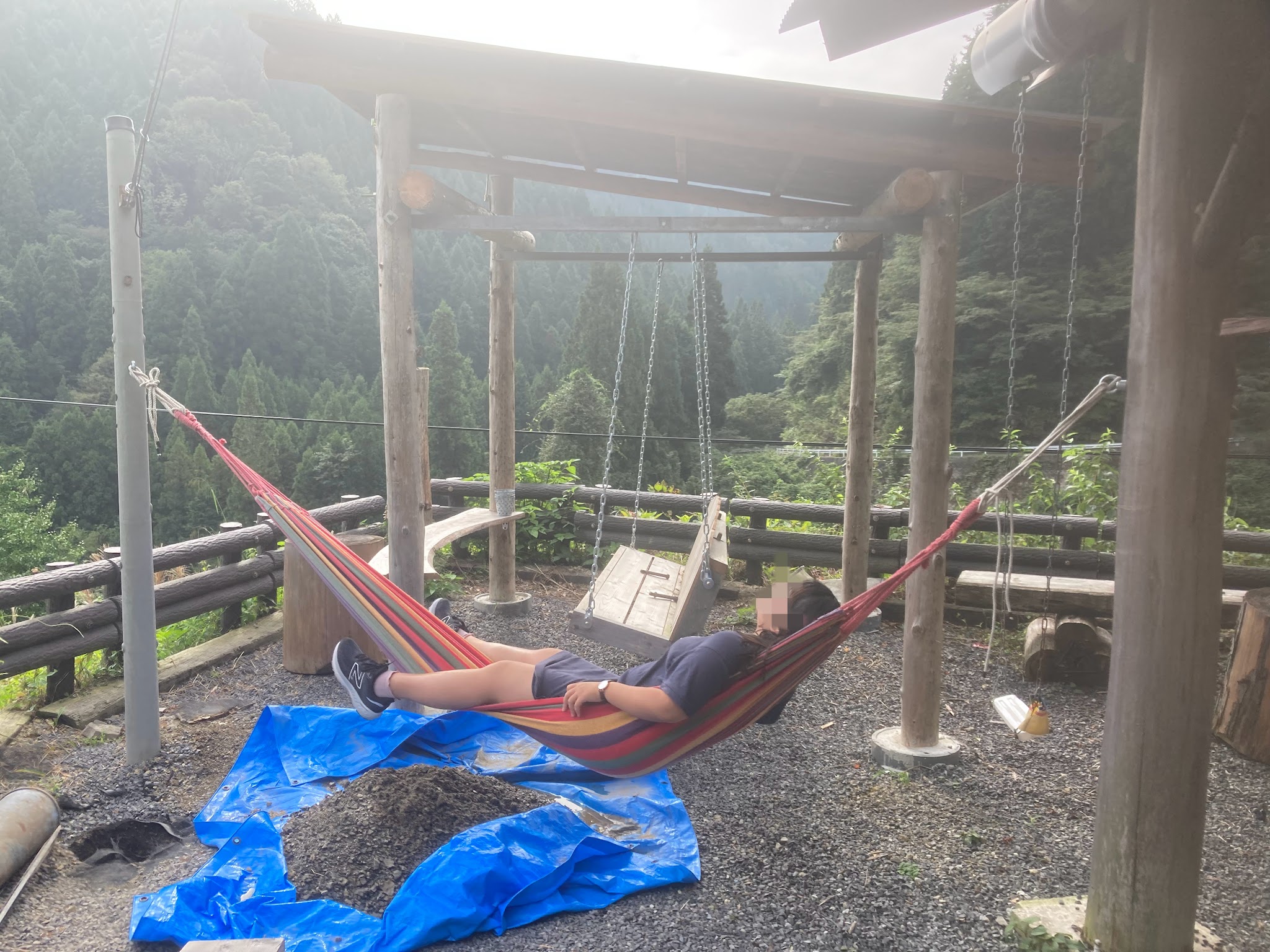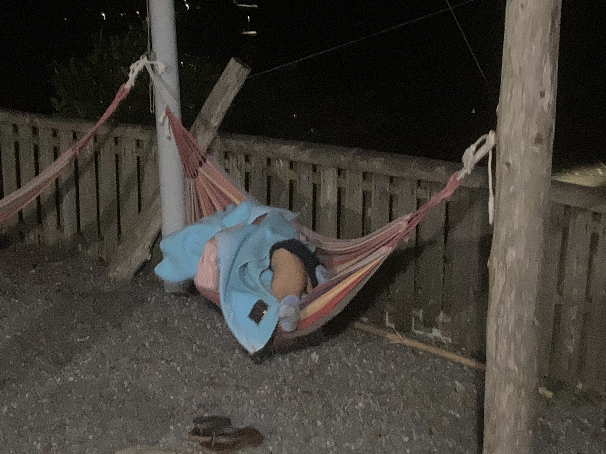 我赫然发现有人在吊床上不知道睡了多久。大家猜猜是谁?
