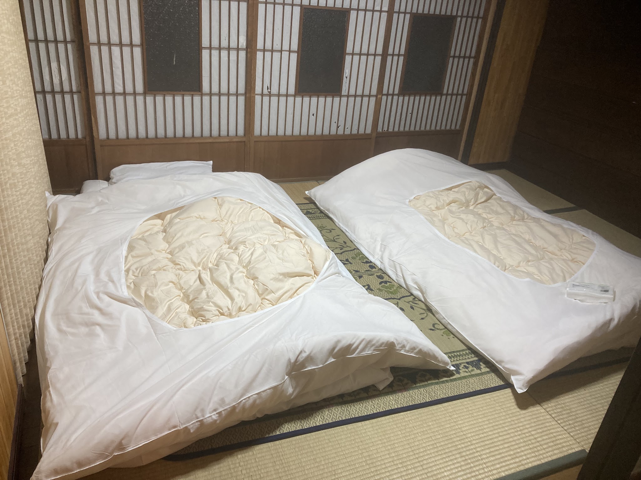 这就是我们今晚住的古民家了。 远离闹市的农村,去最近的超市及便利店开车要1小时。晚上很多飞蛾,白天有黄蜂,经常飞到屋子里。另外,这里虽然有室外用拖鞋,但不穿二趾袜可能有点不舒服。需要的话自己带室外用拖鞋。