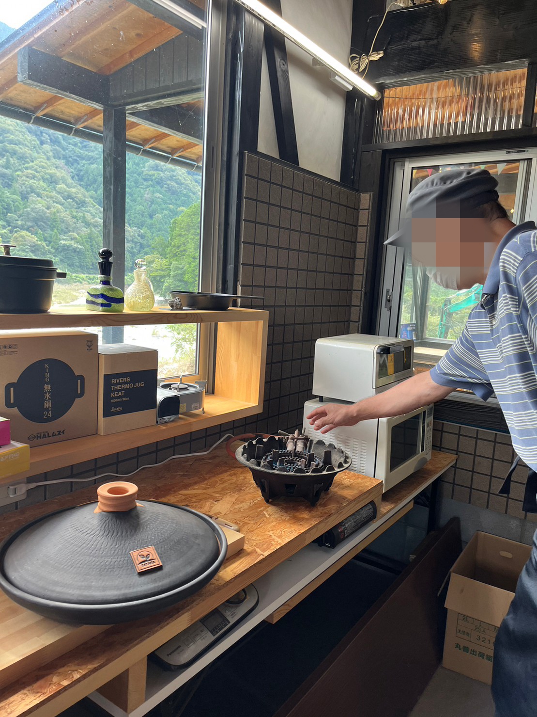 我开车调好速度,到达风炎窑时间只是早了几分钟。我们首先玩的是烹饪,因为需要一小时来煮,这样我们玩完陶艺就可以吃了。这大概是店家夫妇住的地方。由于我昨天没吃到香鱼,今天问他们附近那里有卖,原来他们附近一个店就有卖烤好的,他们帮我们订,还可以让对方送过来。这条香鱼弥补了我昨天的小遗憾。