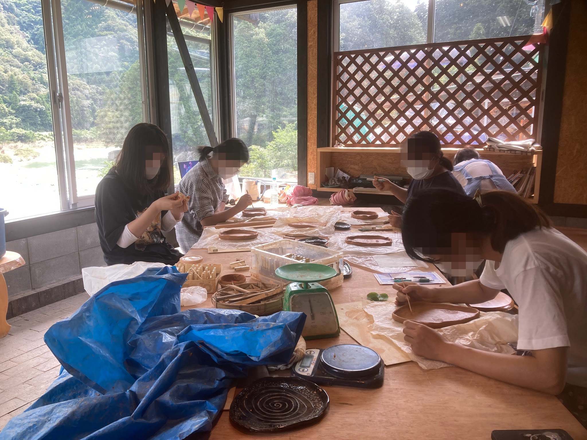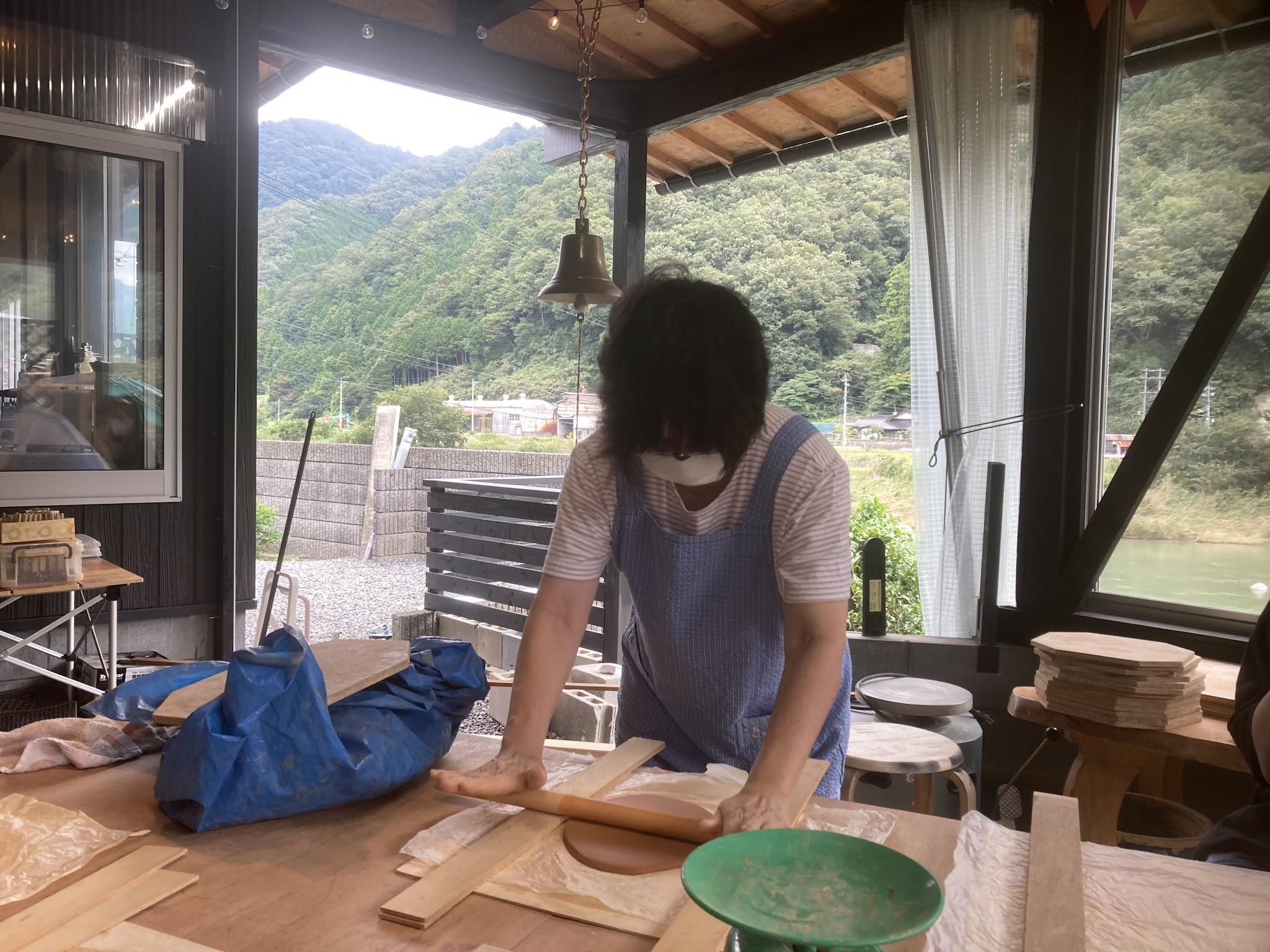 这就是我们今天的工场,在太田川畔,我们吃饭做陶艺都在这里。