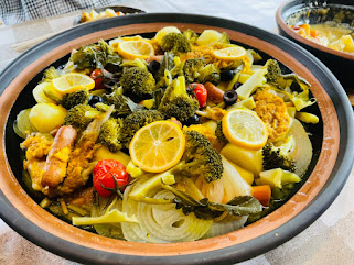 这是我们刚才一起做的,保留了蔬菜的原味。又因为是慢煮,鸡翅特别的嫩。盘下面的橄榄油酱汁用来蘸面包也很赞。