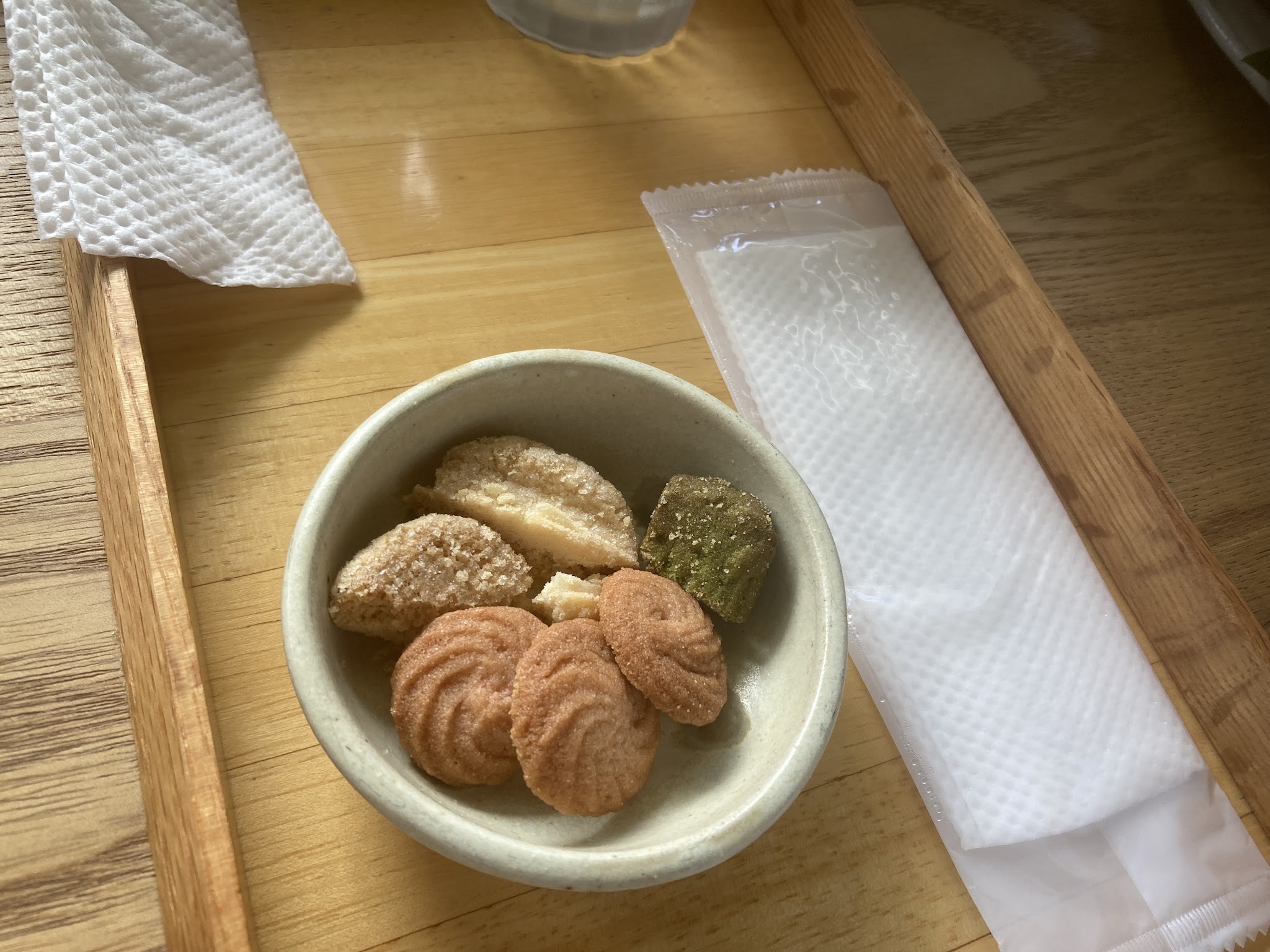 点餐了,大家看看想吃什么?这里用的可是本地棚田米哦,用的所有面都是棚田米粉,不是小麦粉,饼干也是用米粉做的。周末这里可是更多选择。