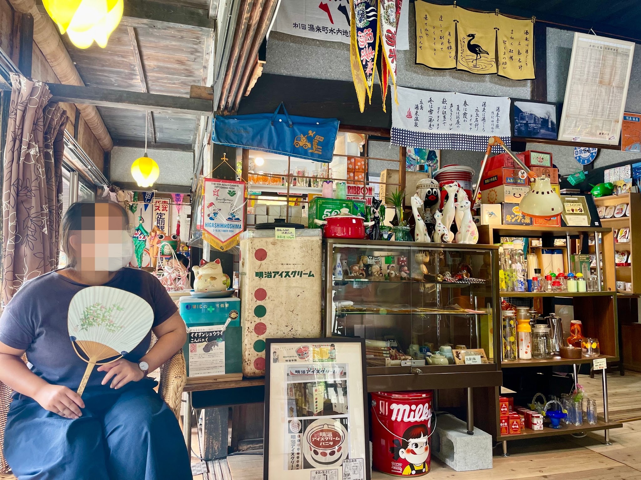 饭后到怀旧昭和猫屋商会,边看怀旧昭和商品,边喝咖啡边欣赏农田景色。充满昭和时代物品的猫屋商会