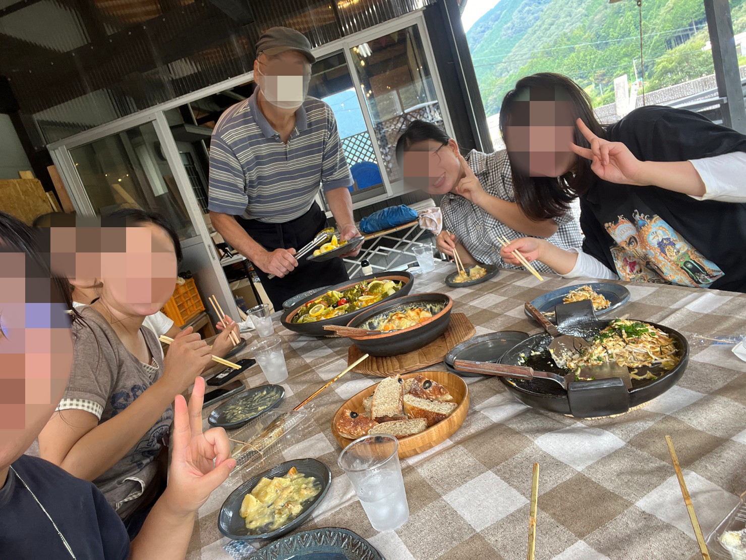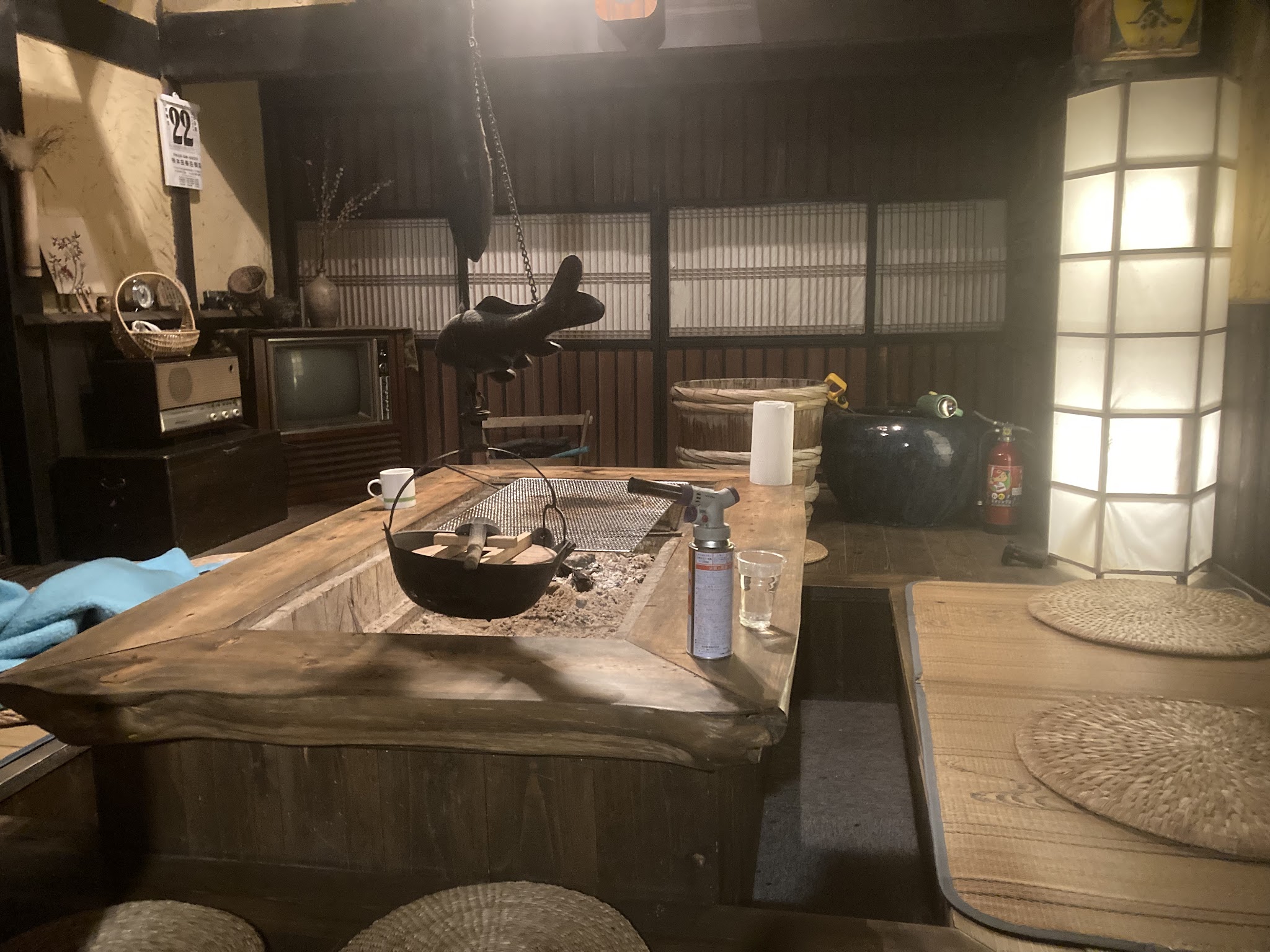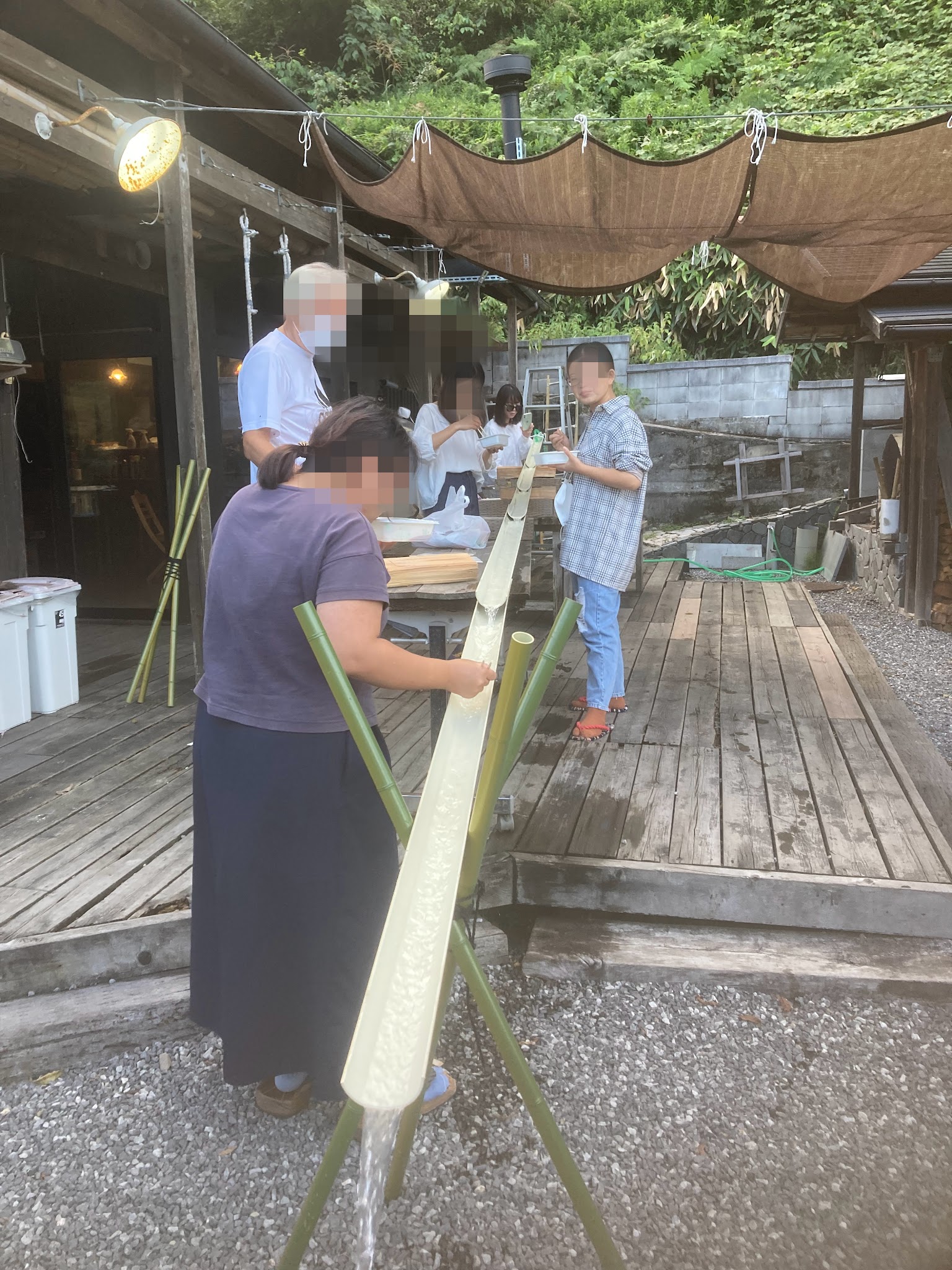 饭后启程到百年古民家汤来田舍体验。古民家位于湯来雲出集落,乃正宗日本农村,几十年前曾经有80 多人,现在成为只有几个人的老人村。为了不令农村没落,几位屋主把家改装,吸引人来体验移住。这里海拔几百米,夏天也很凉快。 我们入住人气最高的しまた,设施最全,温泉,五右卫门风吕,pizza窑,囲炉裡,室外烧烤,秋千,跷跷板,鞭炮都有(2023年还装了桑拿)。晚饭吃当地清流水内川获奖的野生あゆ(鮎)烧烤(全国利き鮎会で 4 度の準グランプリ)及玩流しそうめん(流水面)。