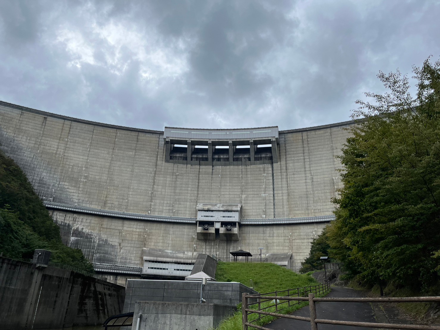午饭后到附近的温井ダム(大坝)看风景,乘高速电梯深入120m下的見学トンネル(tunnel),时间够去猪山展望台,随后返程,晚饭前到西条。