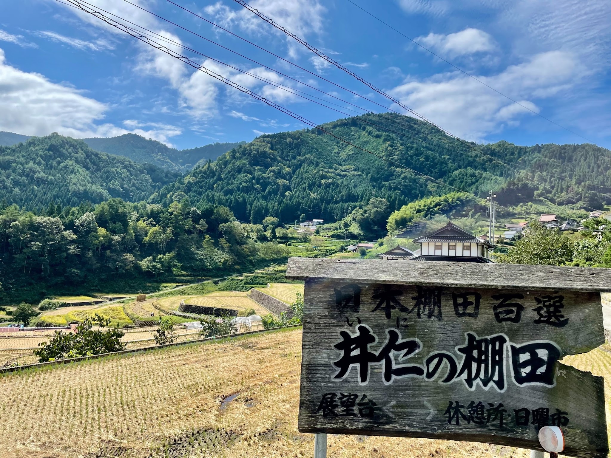 周四早餐后多出发,到连续500年为日本梯田百选「井仁の棚田」(井仁梯田),可以一边尝着梯田米, 一边于收成前俯视最茂盛的梯田景色的咖啡店(棚田カフェ(cafe))午饭。