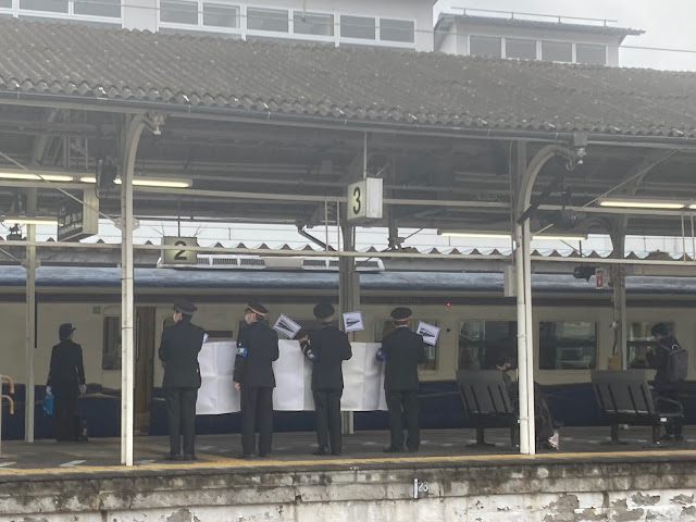 列车直到最后两三站才可以下车的,乘务员礼貌欢送每个客人,向他们挥手再见,典型的日式服务。