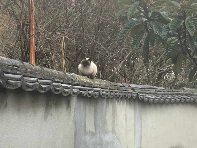 这只猫一直在跟着我们。从来没遇到过跟人走的猫,我们停下来它也停下来。