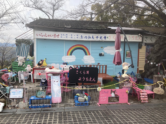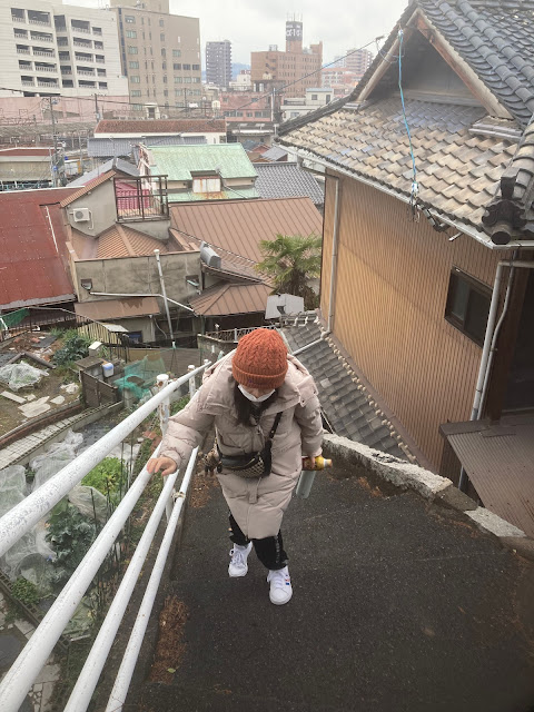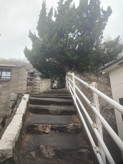 下车后往北走,看到登山道就上。这里很多通道通往千光寺的。在路上看到猫,也看到摘水仙的老奶奶,还和我们聊了几句。