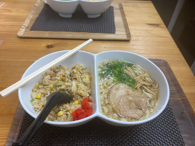 我的拉面及炒饭套餐,950日元。炒饭炒的时候可香了。