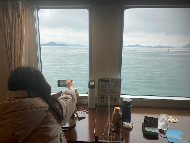 行程: 早8点多西条出发,乘坐广岛站9:32濑户内海贵宾专列エトセトラ(etsetora)三小时畅游濑户内海。 我们定好了靠近海侧位置,带上小点心可以一边享受濑户内海美景一边品尝美食。